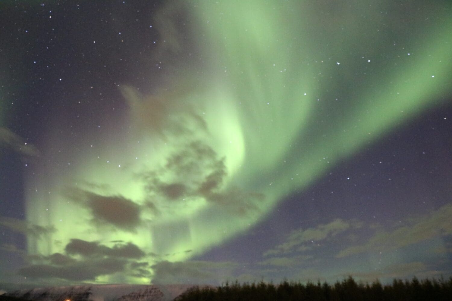 Where we head each night depends on where we think it’s most likely to find clear sky and the best conditions to enjoy the lights.