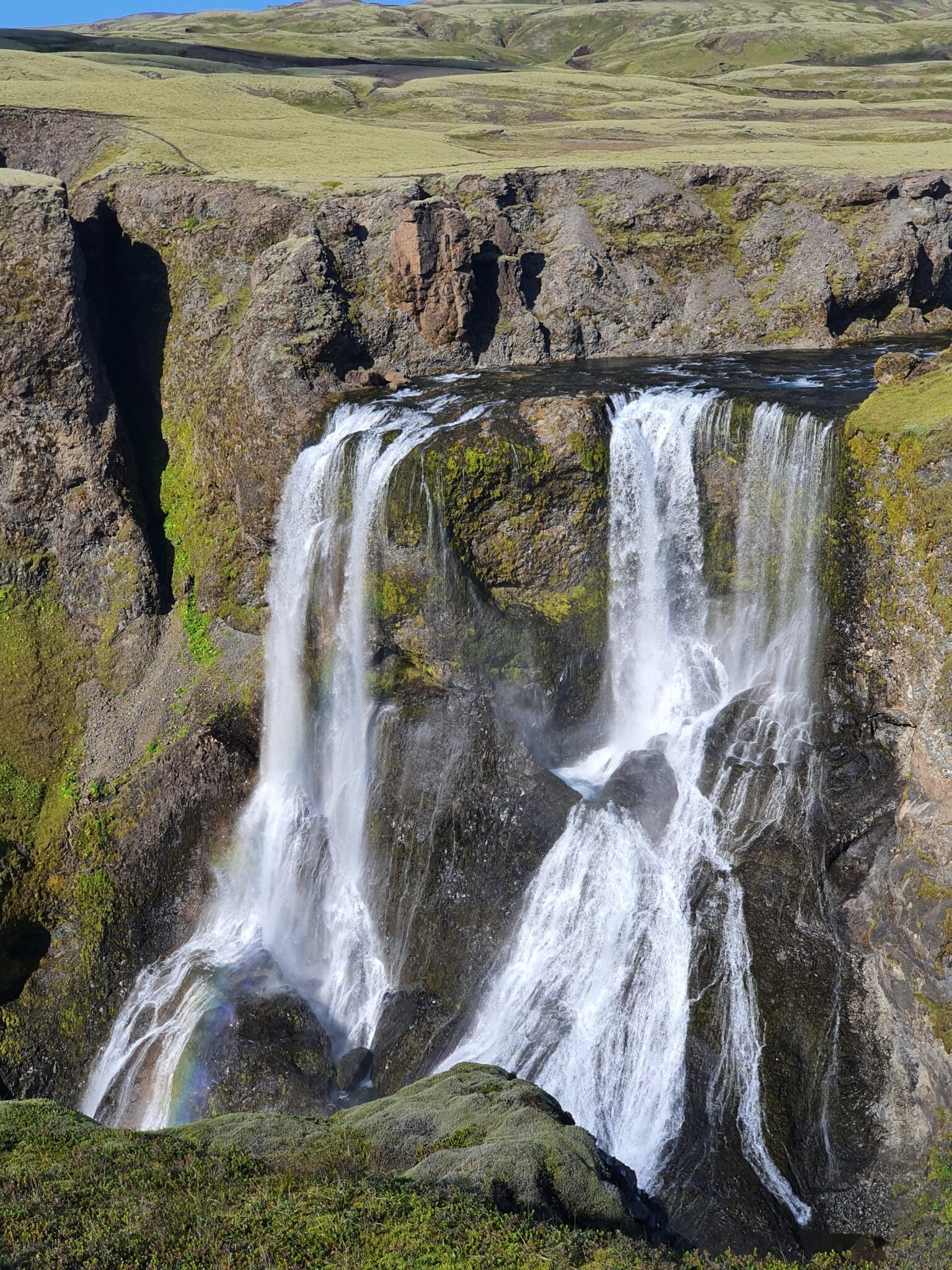 From Fjaðrárgljúfur, we follow the 4×4 route and as we enter the highlands plateau, we reach the waterfall Fagrifoss. Fagrifoss is on a lowkey path and certainly not visited enough while being among Iceland’s most beautiful waterfalls.