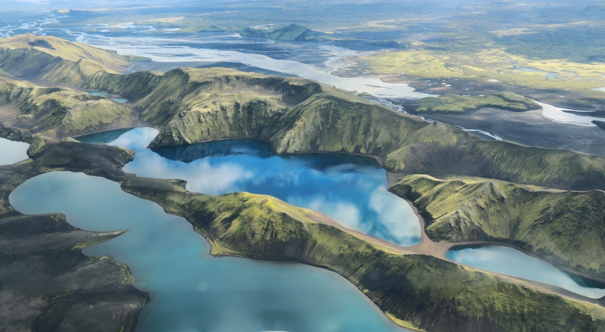 Experience three of Iceland’s most extraordinary landscapes in a single flight. From shimmering glaciers and the vast Laki Crater chain to the rainbow-colored rhyolite mountains of Landmannalaugar, this journey captures the essence of Iceland’s wild interior. Perfect for travelers who want to see the highlands’ most remote and colorful regions without hiking or long drives.