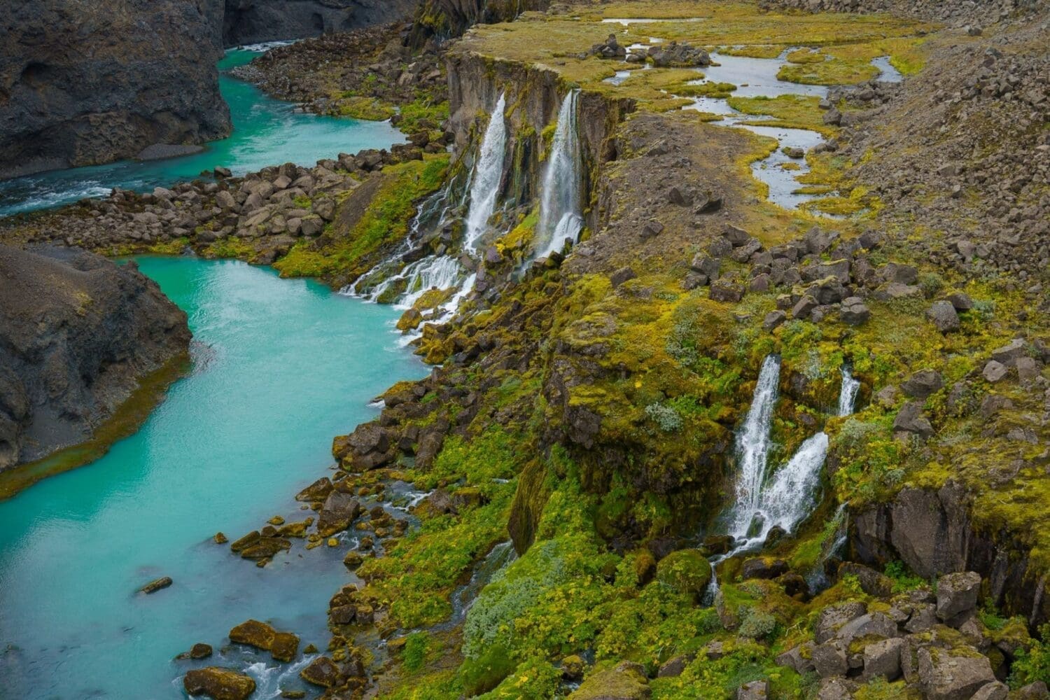 - Sigöldugljúfur Canyon: Turquoise streams and waterfalls creating a fairytale-like scene