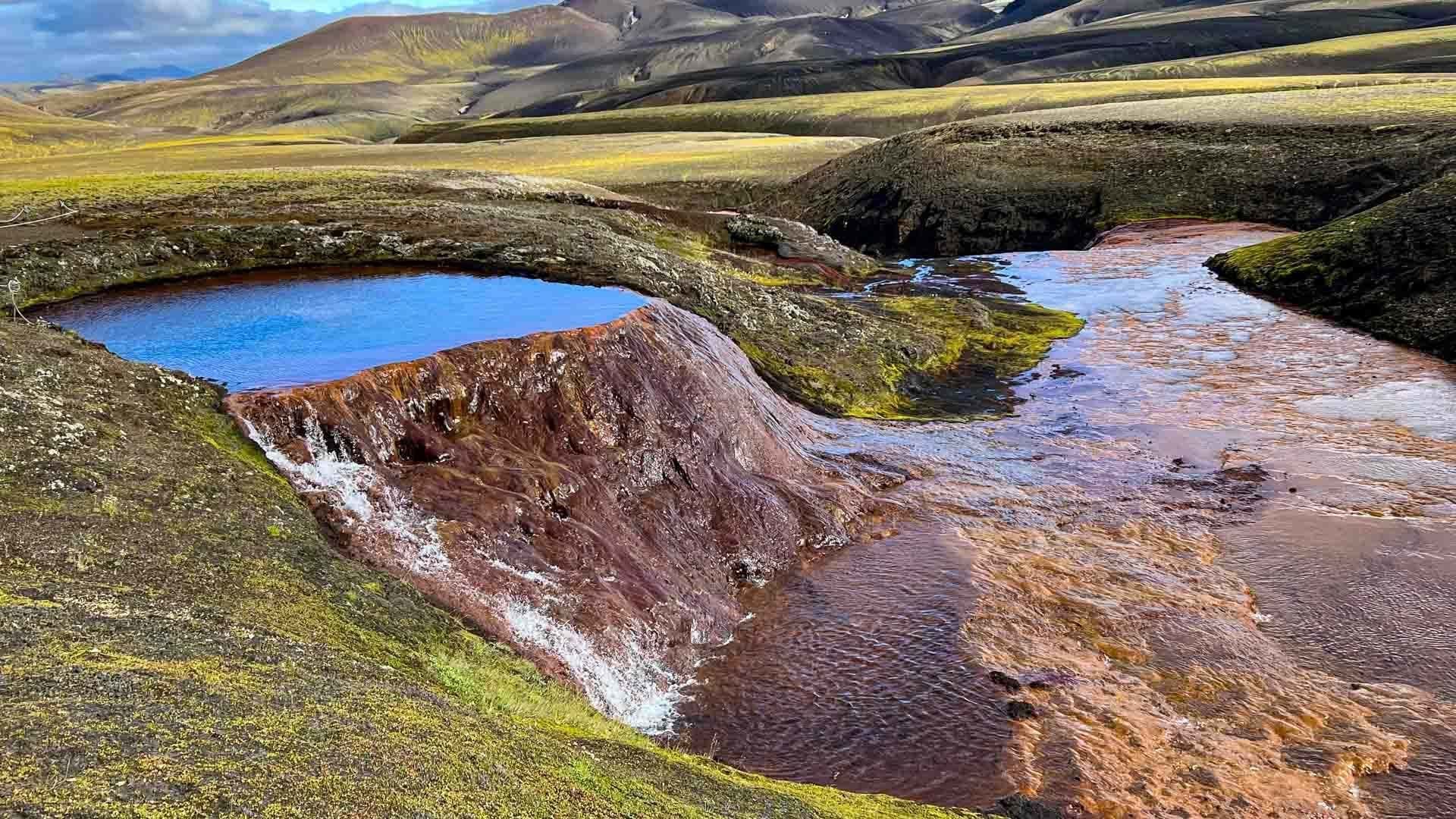 We depart from Reykjavík at 08:00, embarking on an exciting journey. Our route will take us eastward through the captivating mountains along Highway 1. We’ll pass through the charming towns of Hveragerði and Selfoss, continuing our adventure through Dómadalsleið into the breathtaking highlands. Before reaching our cozy cabin, Landmannahelli, we’ll embark on a scenic hike up to the magnificent Rauðufossar, immersing ourselves in their natural beauty and exploring their origins. We’ll settle into our cabin at Landmannahellir, where we’ll spend the next three nights.