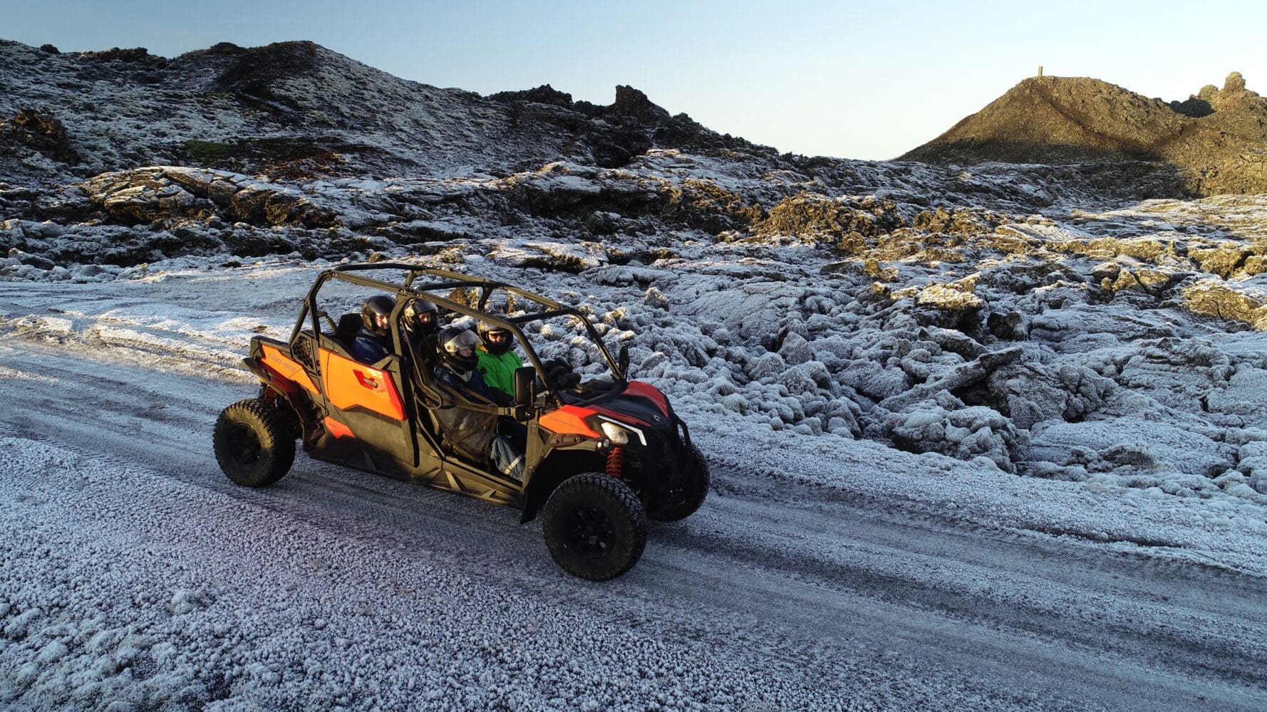 This two-hour buggy tour takes you through the dramatic volcanic landscape surrounding Grindavík. With room for up to four people per buggy, it’s the ideal option for families or small groups. You’ll ride through lava fields, over gentle trails, and down to a black sand.