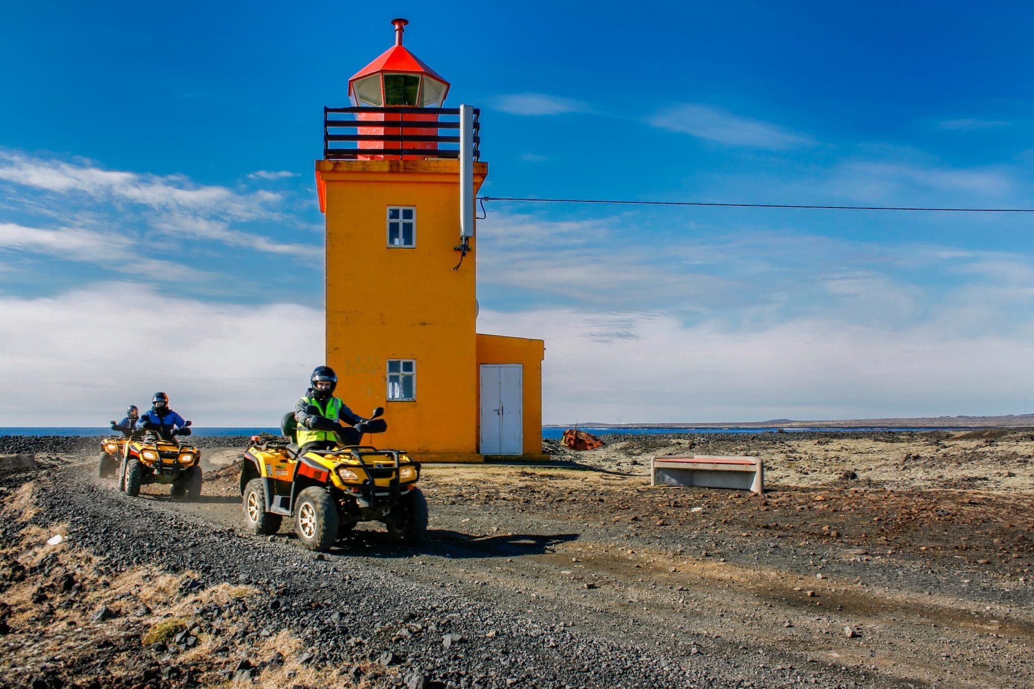Before the ATV tour starts, you will be picked up at your accommodation in Reykjavik by Reykjavik Excursions. From Reykjavik we drive directly to the Blue Lagoon where you will change buses and meet your ATV guides. The ATV base is located approx 5 minutes drive from the Blue Lagoon. We start the tour by driving on mountain roads towards and over the mountain Festarfjall. We then head to the black sandy beach called Selatangar where we will get off the bikes and explore some of the old ruins that are still to be found on the beach. After a brief stop we continue the ride with more exciting mountain safari. After a thrilling two hour ATV adventure tour the guide will bring you back to the Blue Lagoon, where you can either spend the rest of the afternoon bathing in the warm water of the Blue Lagoon or take the next available Reykjavik Excursions bus back to your hotel.