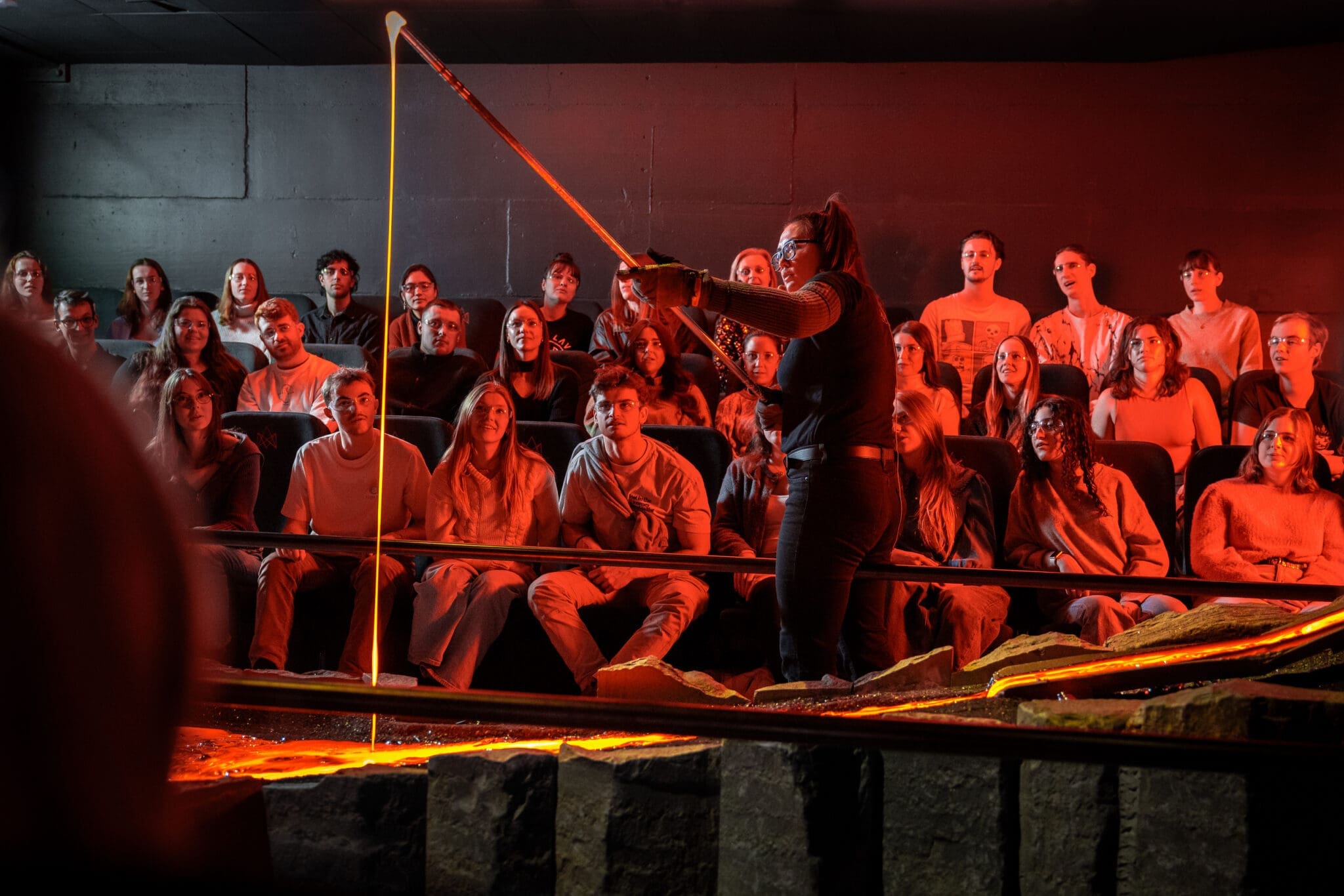 LAVA SHOW is an incredible, unforgettable experience. First, the live host welcomes the guest, explains what’s about to happen and goes over the security details. Then a short educational video takes you through a journey of Icelandic volcano history. At last, it’s the highlight of the show, when the red-hot lava of 1100°C (2000°F) flows into the showroom. In an instant, the showroom heats up to a toasty temperature. In the safety of their seat just a short distance from the flowing lava, the audience watches as the lava flows into the room. Then, the lava host starts playing with the lava, manipulating it, while explaining what is happening. It truly is a sensational experience!