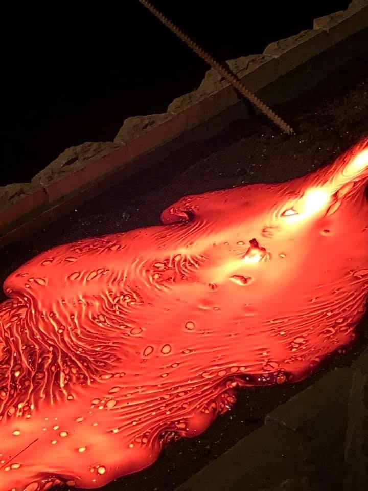 Everyone is advised to to keep their safety goggles on at all times during the show when there is lava in the showroom – also and especially when it is cooling down and solidifying.