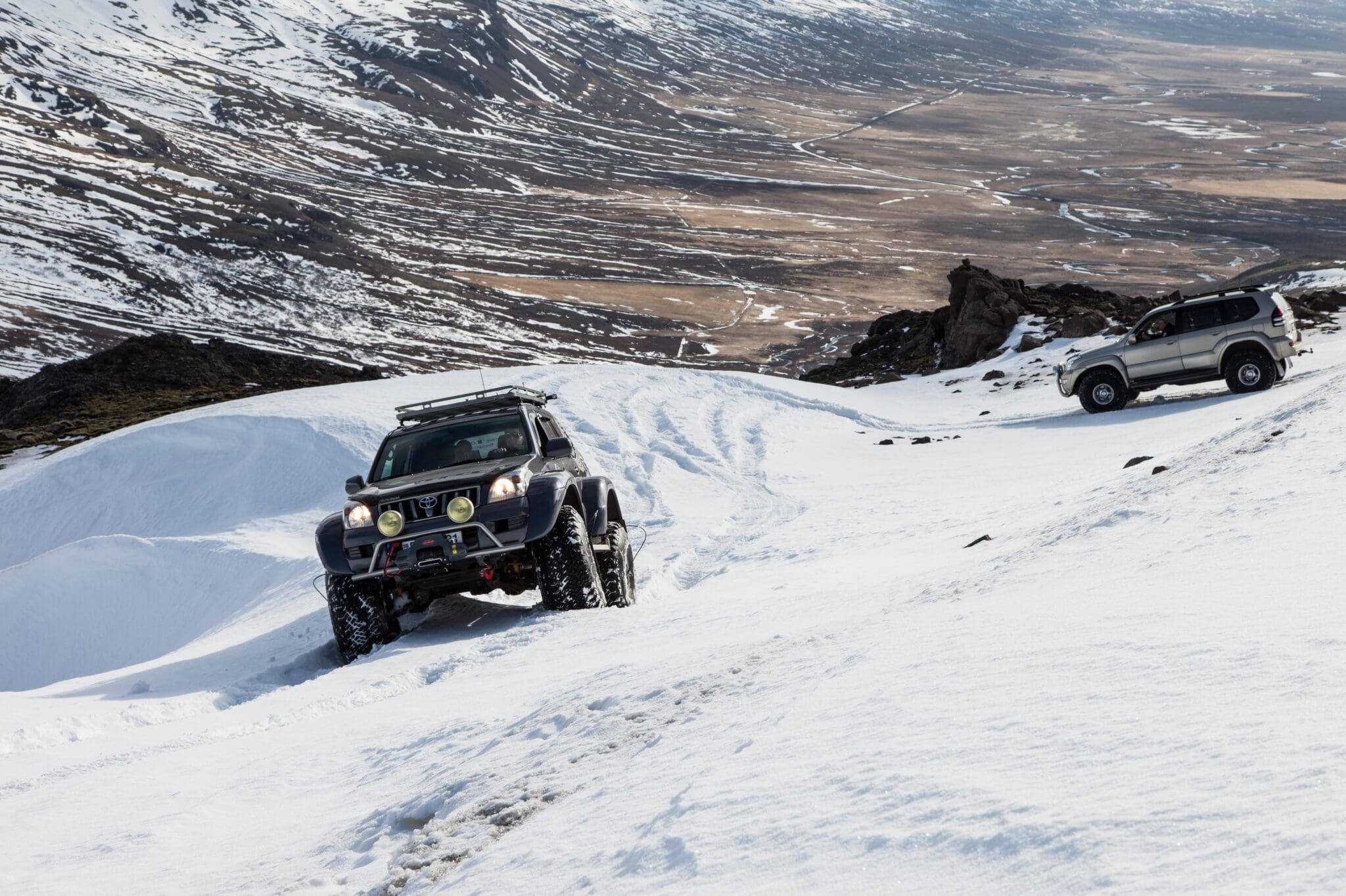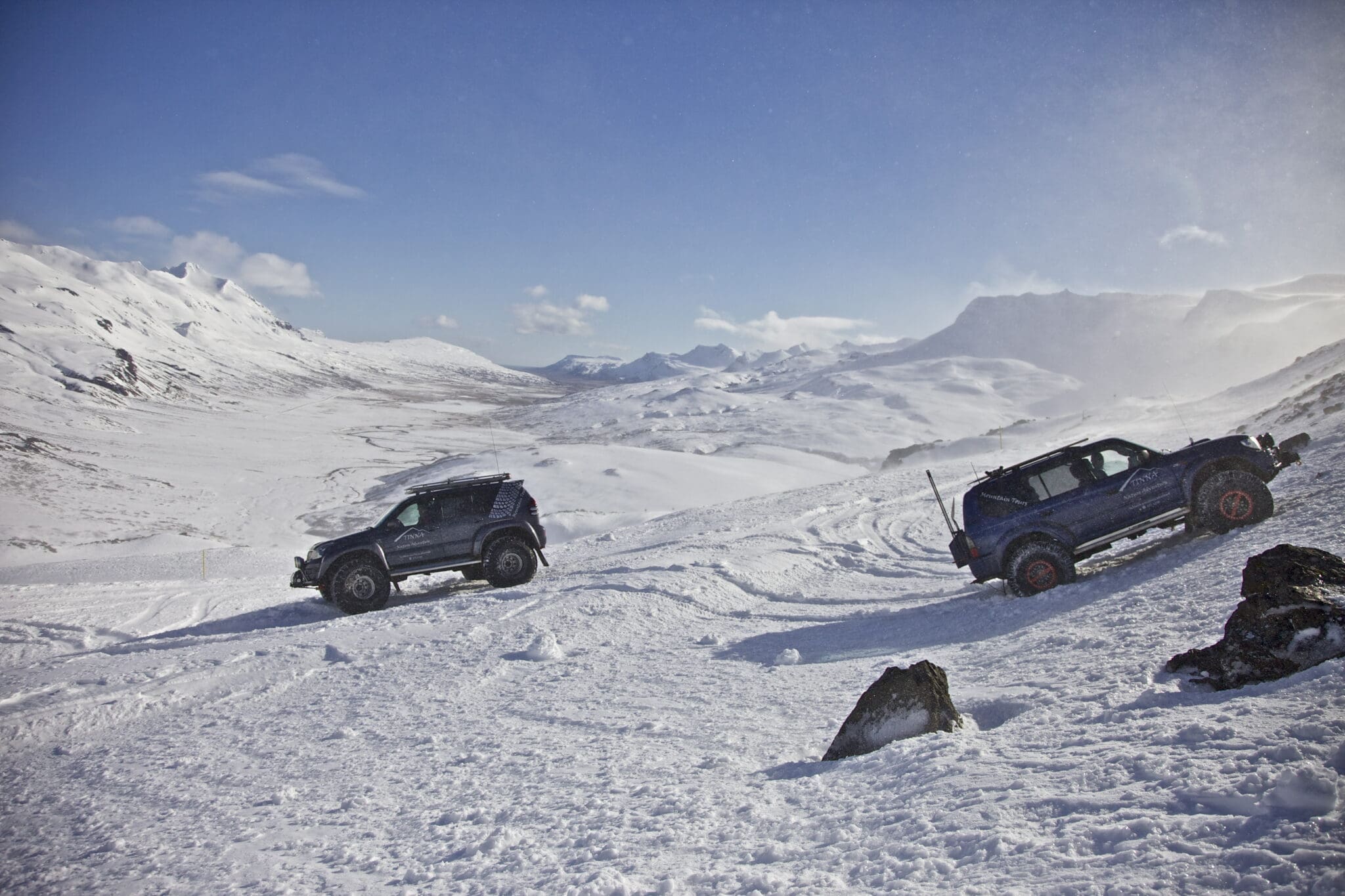 - When we arrive at the mountains a journey begins across snow-covered mountains until we arrive at Mt. Kistufell where in clear weather you may get a chance to enjoy a spectacular view all the way to Vatnajökull glacier, Mt. Snæfell, Mt. Herðubreið and across the Breiðalur Valley.