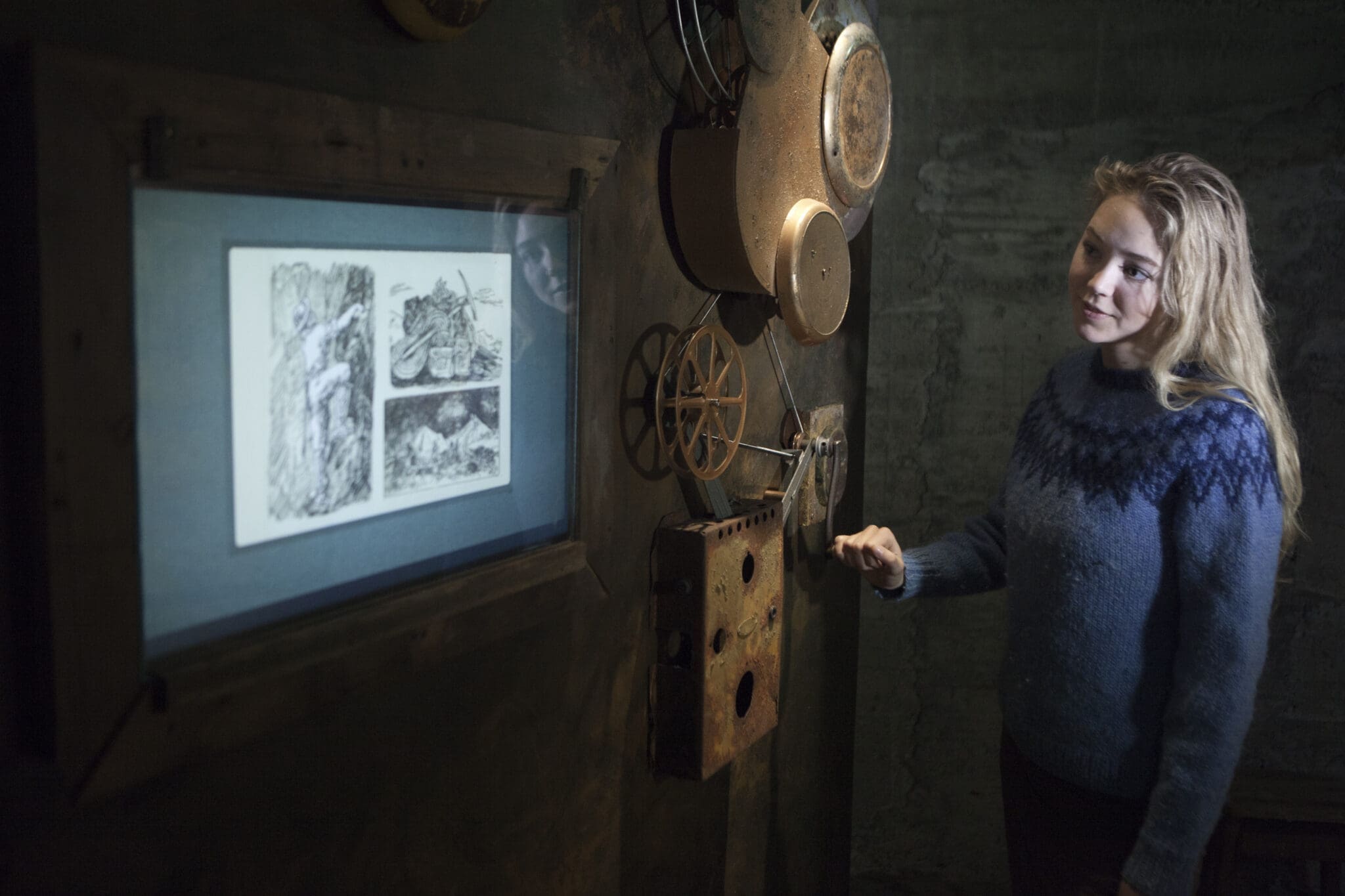In June 2016 the Wilderness Center opened its exhibitions on life in and near the highlands. The extended exhibition area reaches as far the top of the hills behind the Center, as well as to the abandoned farm Kleif, about 3 km up the valley. Various farm buildings are turned into exhibition spaces. Upon entering the Center, the visitor embarks on an adventure, backwards in time. The exhibitions lend the Wilderness Center a unique setting.