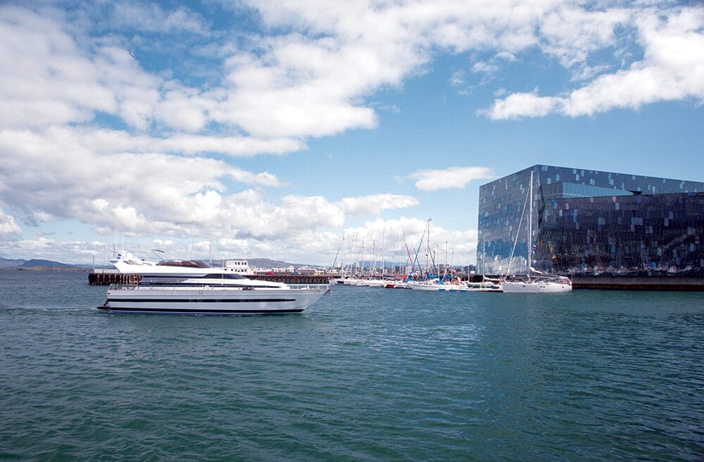 Our sales office is the first one in the row, when you walk from the cross roads at Ægisgardur pier.