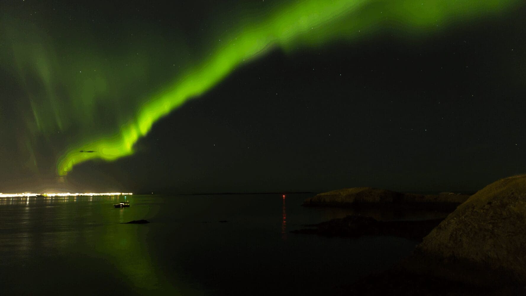 Our experienced crew will keep an eye out for the Aurora Borealis activity to find the best route, while you enjoy the scenery from the vast darkness behind the small islands in Faxa bay (Faxaflói). Among them is one of Iceland’s most famous Islands, Viðey where the Imagine Peace Tower by Yoko Ono’s lights up the night sky from October 9th – December 8th and few other days.