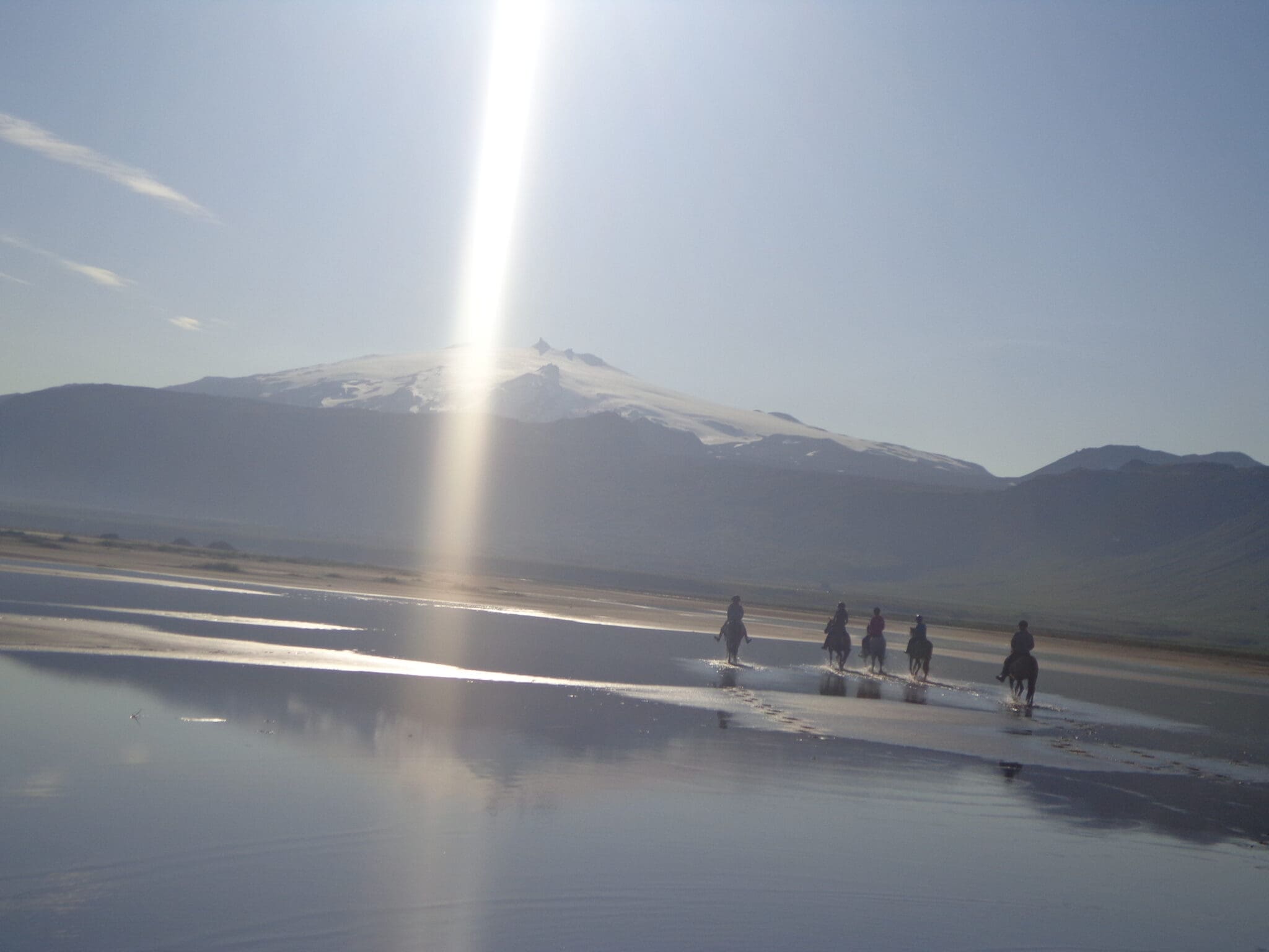 A guided one hour riding tour on Hraunlandarif beach Snæfellsnes. Experience the power and beauty of the world famous Icelandic horse in it's natural habitat. Ride in sand along the North Atlantic coast and experience the unimaginable beauty of the Snæfellsnes peninsula.