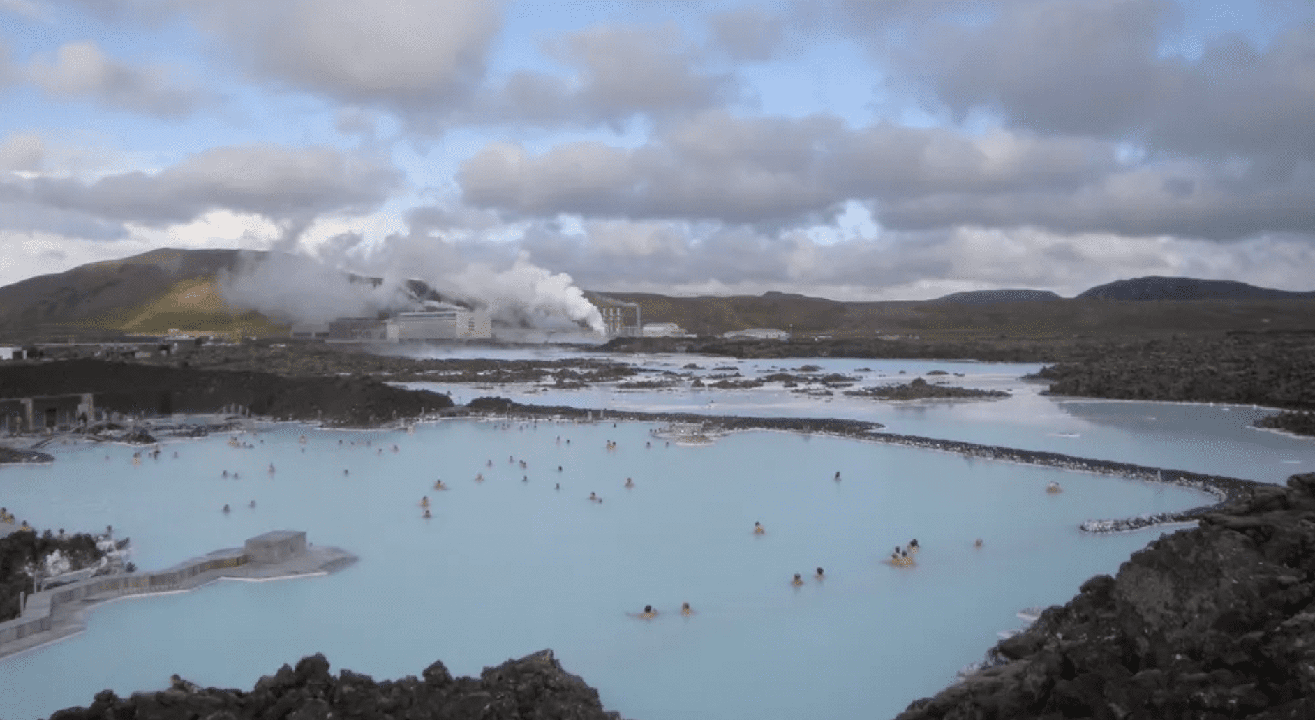 The Blue Lagoon is a geothermal SPA in southwestern Iceland. It is located in a lava field 5 km from Grindavík and in front of Mount Þorbjörn on the Reykjanes Peninsula, in a place favorable for geothermal power, and is supplied by water used in the nearby Svartsengi Geothermal Power Station.