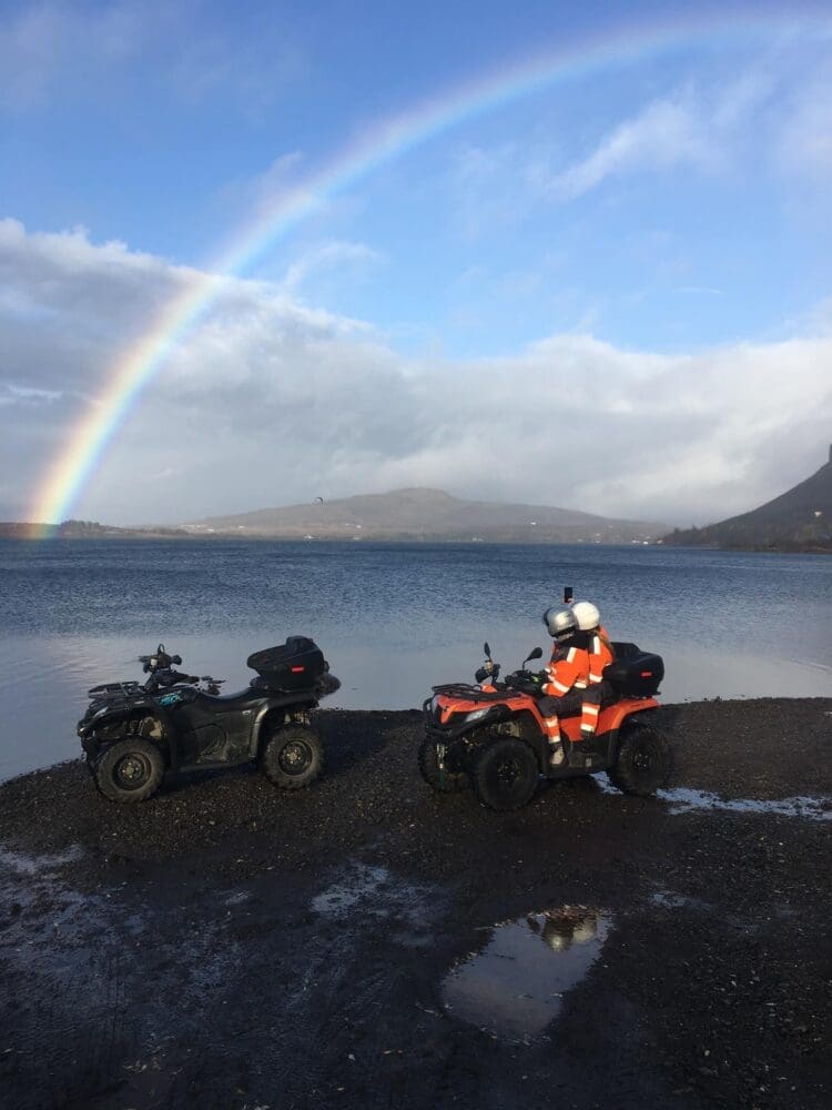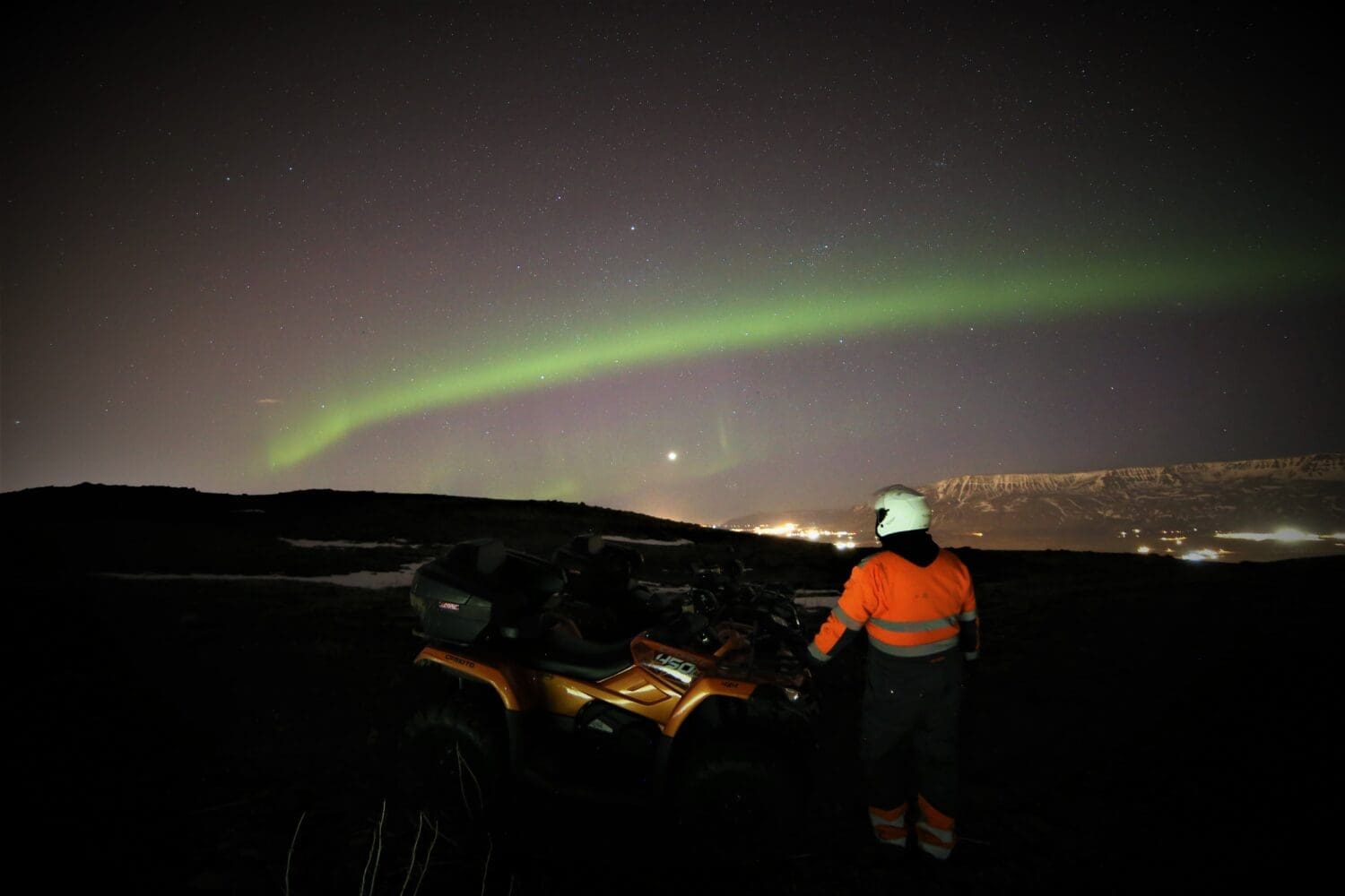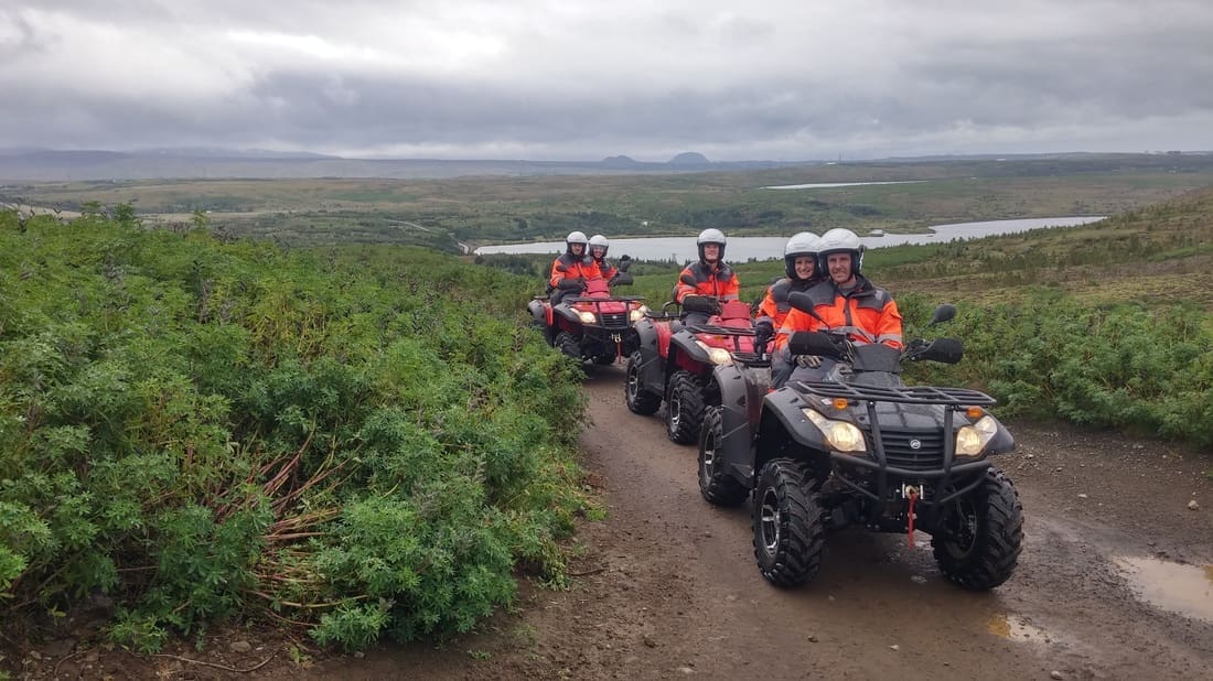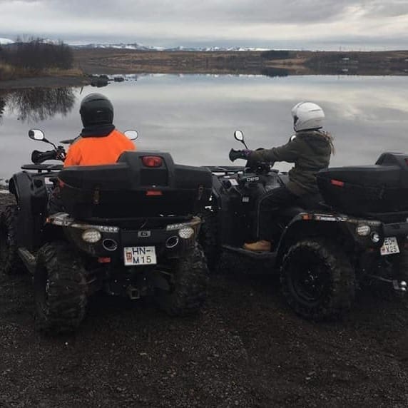 The Private ATV tour tour takes you to Hafravatn beautiful lake and up to the Reykjavik peak for a magnificent view over the Capital and the towns close to Reykjavik. Before we go up we take a little drive for horses, pictures and in a good day you can perhaps see the lava that came from volcano very close to Hafnarfjordur and if we are lucky we can see the Glacier Snæfellsjölull and the Mountain in Reykjanes Peninsula that have been shaking and erupting last years. Riding time around 2 hours or about 3.5 hours with pickup and drop off. You go shared ride if you do not select Solo ride in the booking progress. That means you go with your travel partner on the ATV. All drivers need fully valid driving license.