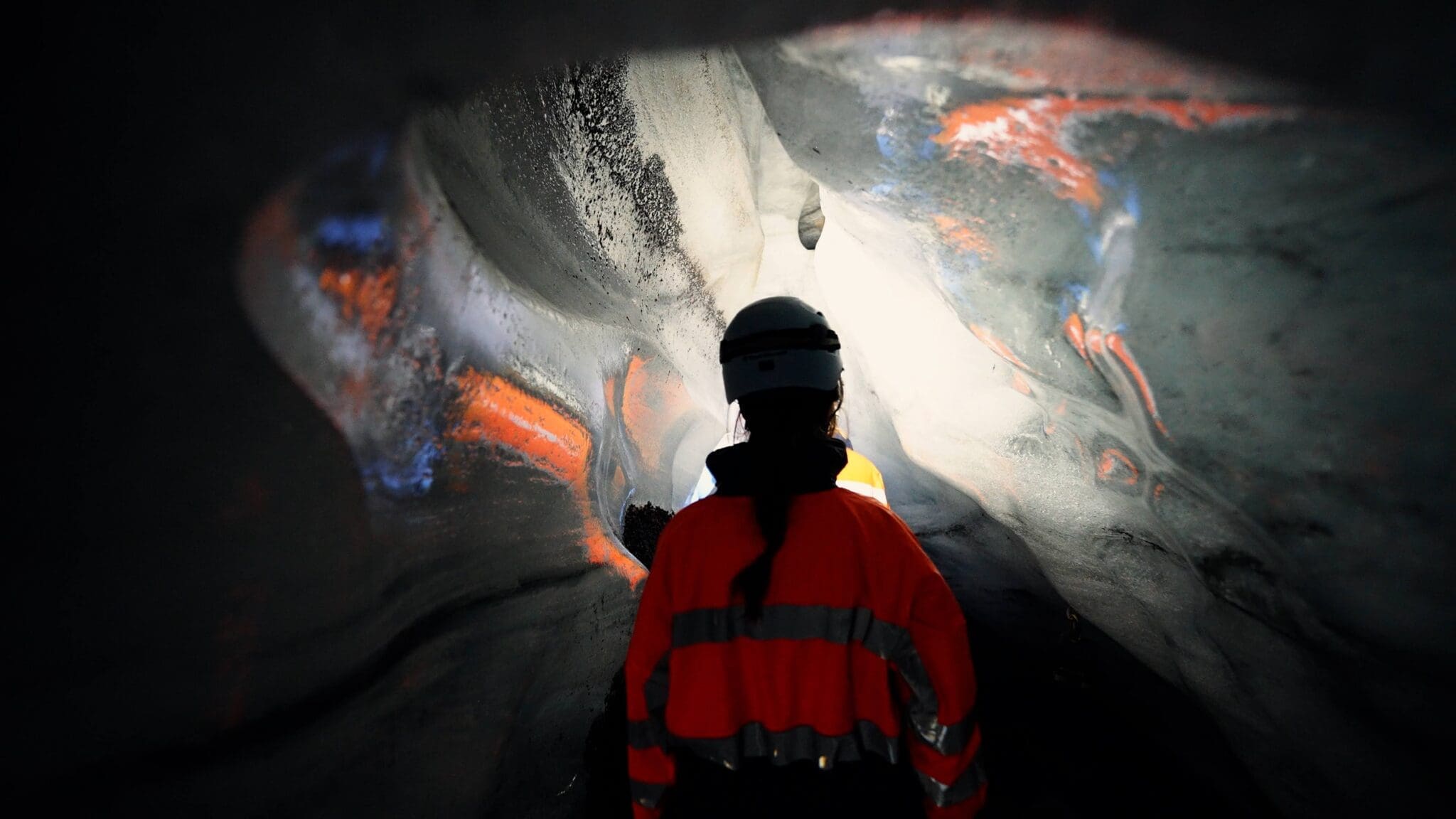 After arriving at the glacier, we’ll gear up with the safety gear for it (like crampons and glacier helmets) and begin a short walk to the entrance of the Katla Ice Cave. Inside, you’ll witness a surreal world of shimmering blue ice layered with ancient volcanic ash. Your guide will explain the fascinating natural forces that shaped this cave and its connection to Iceland’s active geology.