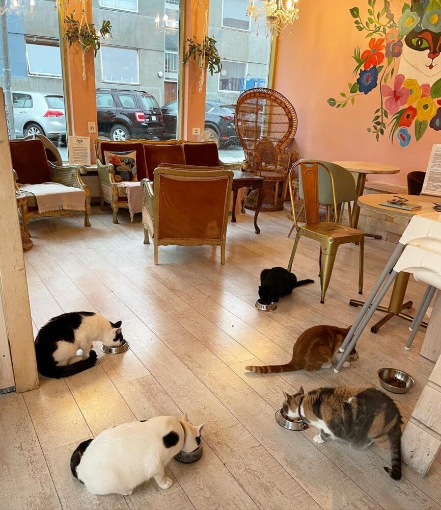 There we sip on some hot drinks and taste Icelandic pastry while petting some cats