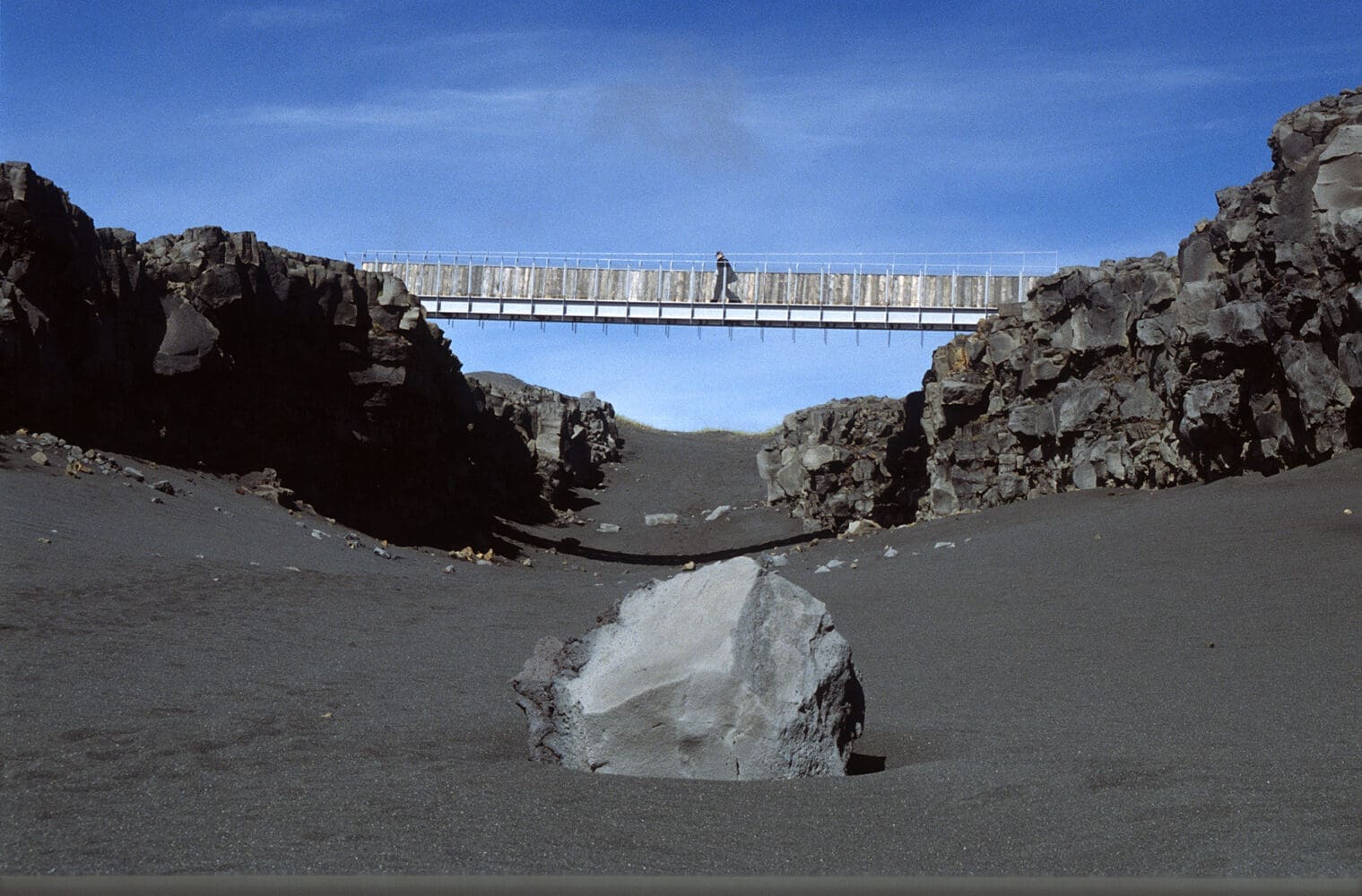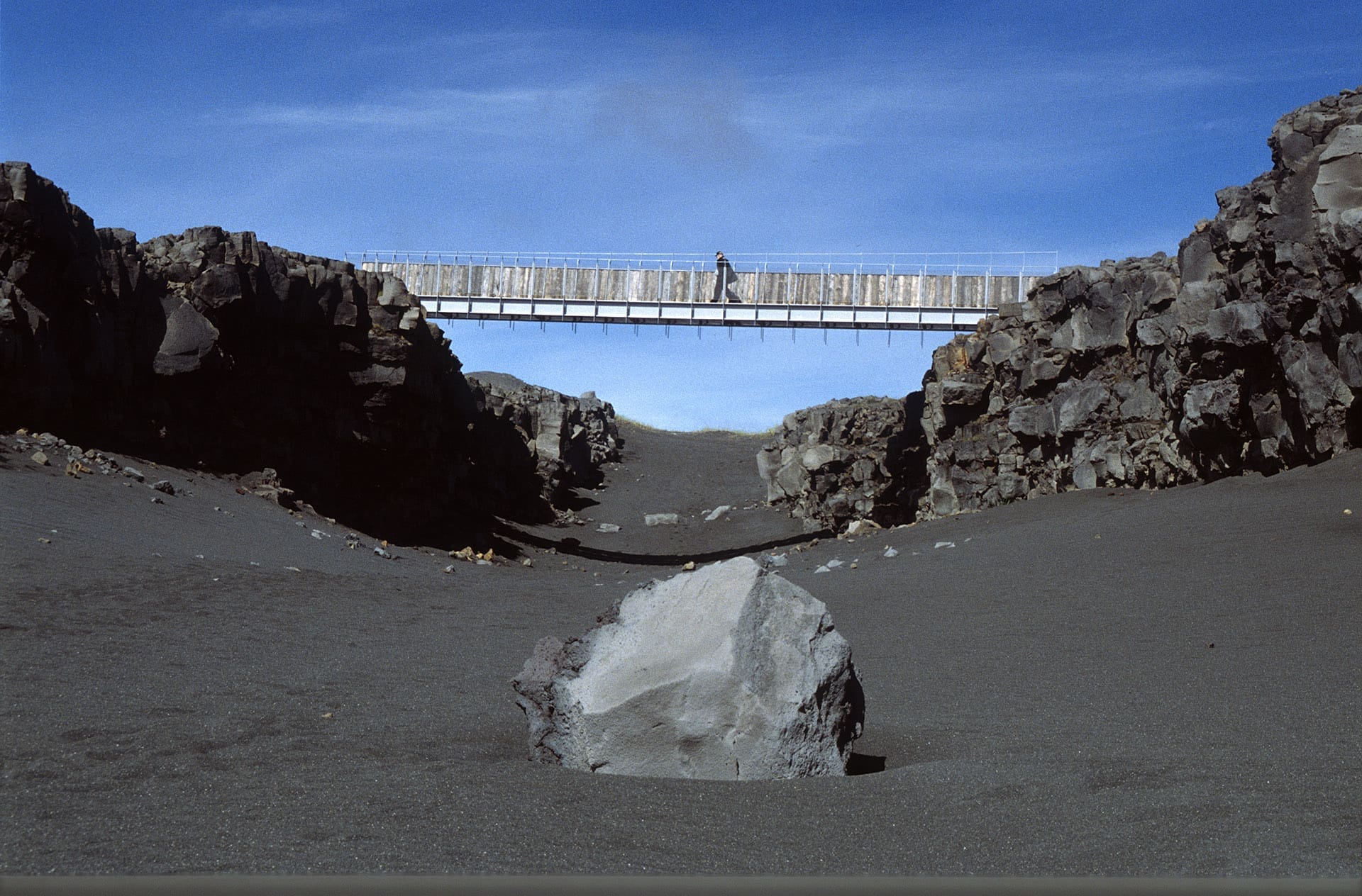 The Eurasian and American tectonic plates are drifting further and  further apart and Iceland lies exactly on this seam. A bridge was built  over a gorge created by continental drift on which you can easily walk  from Europe to America and back.