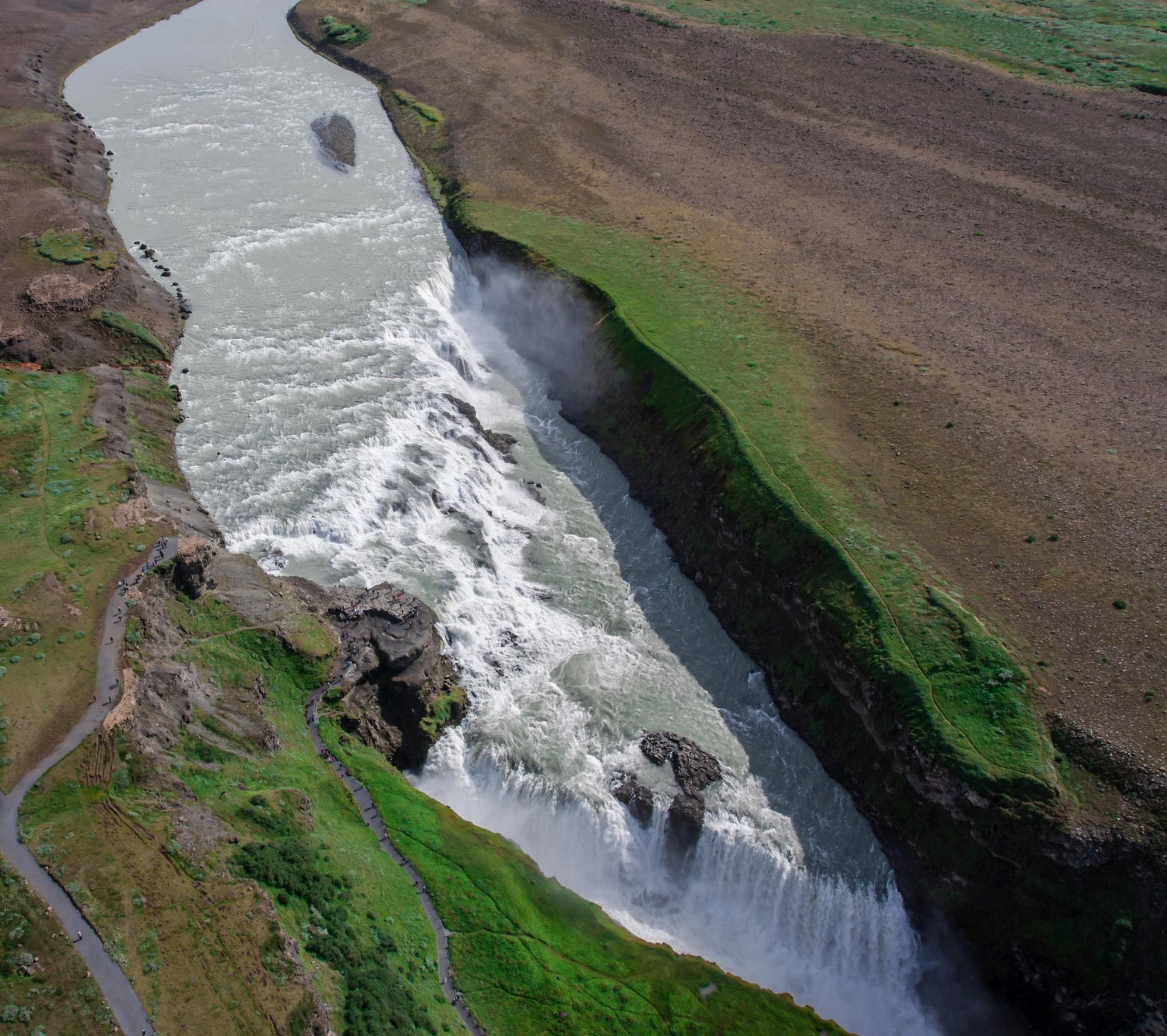 Next, visit the Geysir geothermal area, home to the famous Strokkur geyser. Watch as it erupts every few minutes, shooting hot water up to 30 meters into the air. Explore the surrounding hot springs and bubbling mud pots, all set against the backdrop of the rugged Icelandic landscape.– Gullfoss Waterfall