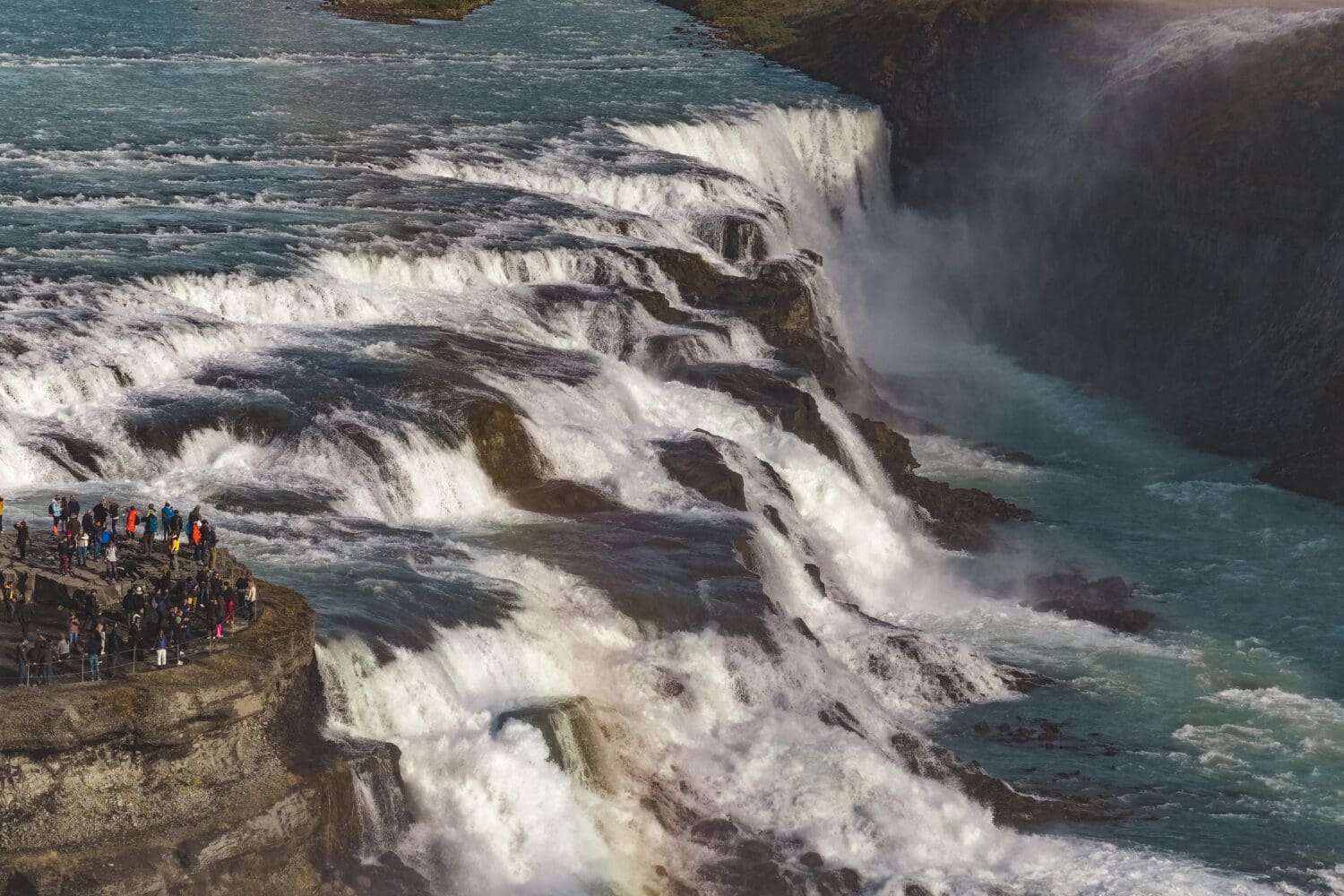 Gullfoss waterfall has both very historical significance as well as being significant by itself. The mass of water running is very impressive and one can loose track of time staring into the waterfall.