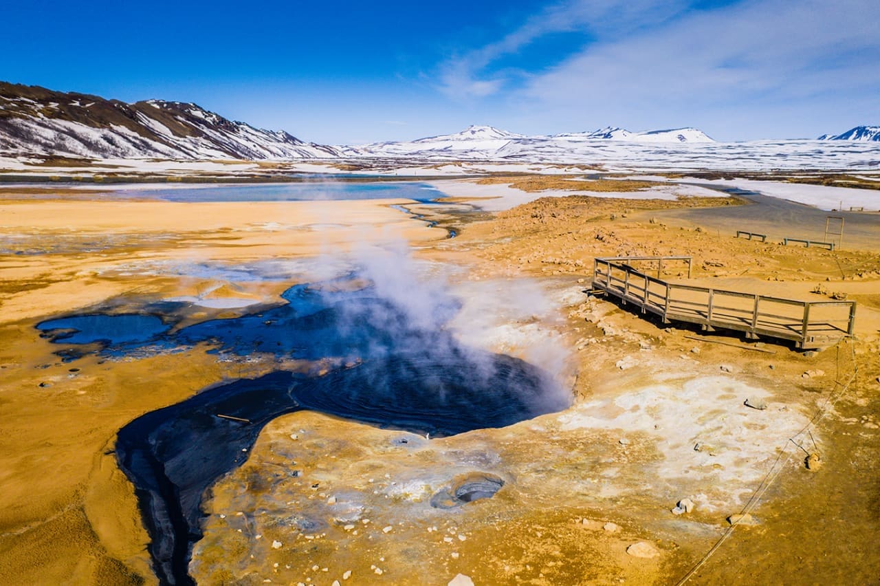Explore the otherworldly Mývatn area, including:Skútustaðagígar Pseudocraters, Dimmuborgir Lava Fields, Hverir Geothermal Area (bubbling mud pots and steam vents) - Dettifoss – Europe’s Most Powerful Waterfall