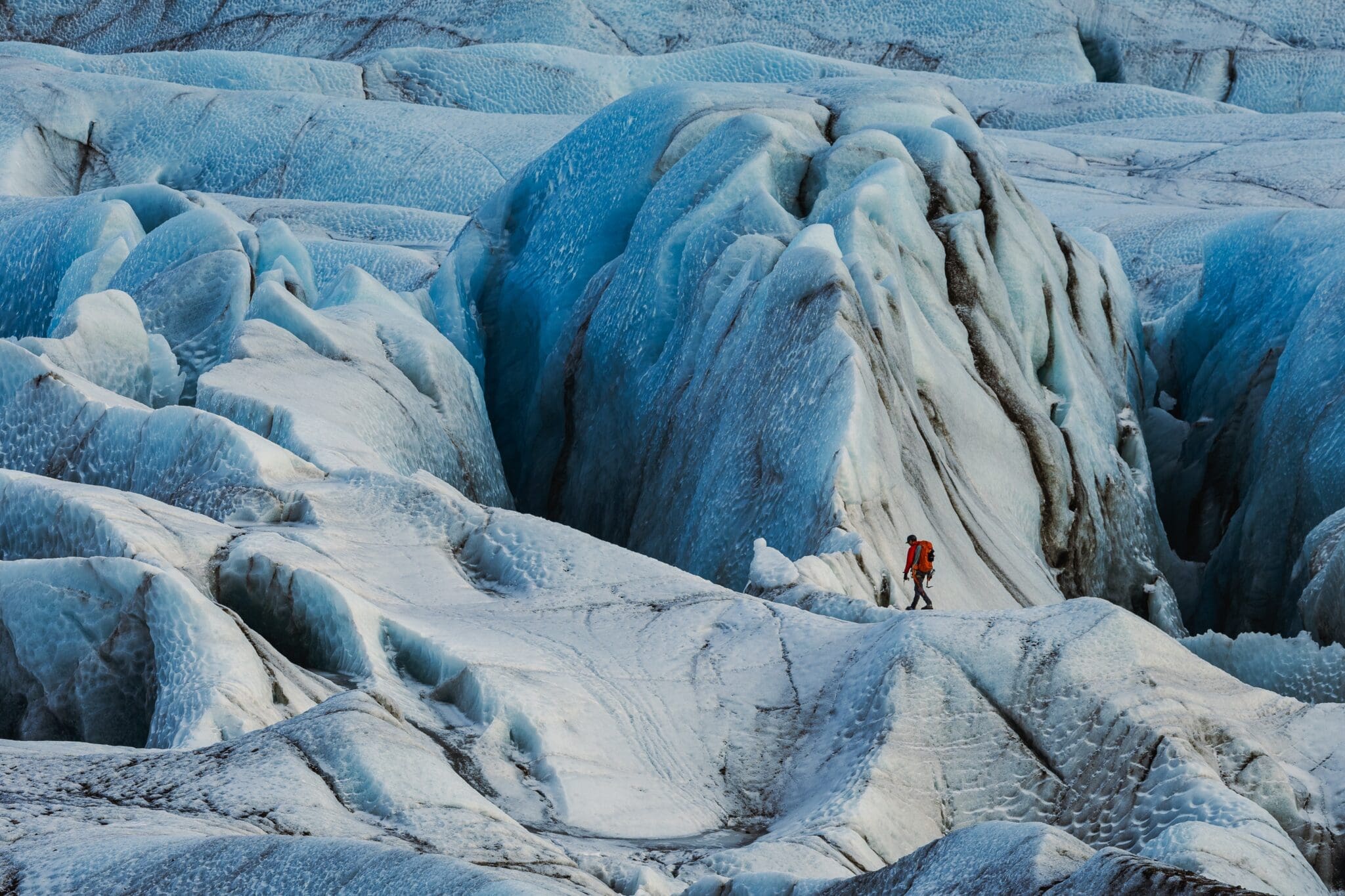 Across the 15 hours, your route along the South Coast unfurls like a living postcard: waterfalls, lava fields, black-sand plains and distant glaciers. At Jökulsárlón, icebergs drift silently across the lagoon, sometimes carrying resting seals. Just across the road, Diamond Beach glows with scattered pieces of crystal-blue ice shimmering on the dark shoreline.