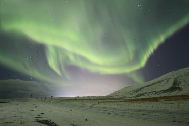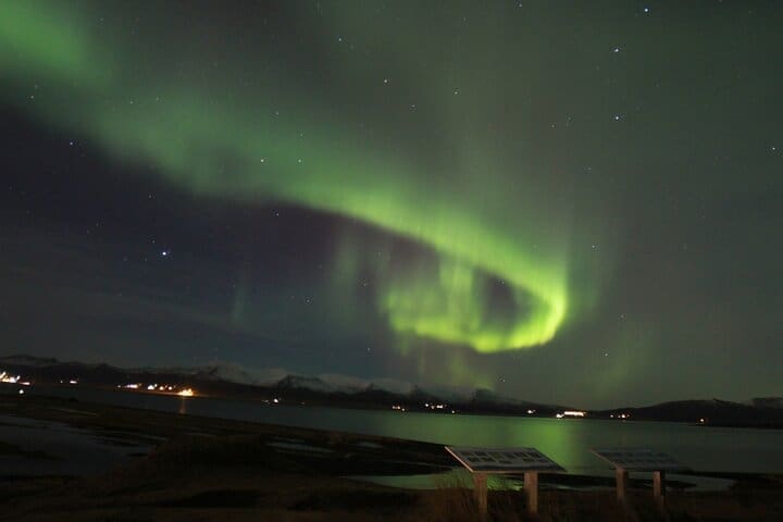 Our journey will take us outside of the city limits away from as much light pollution as possible. The Northern Lights are harder to see from Reykjavík. The location will depend on the cloud coverage and activity each time. We try to keep it as short of a drive as possible and we might stop at one or several locations as the lights can be quite elusive and often it will be a waiting game for this beautiful phenomenon, which might be perfect while your guide sets up his camera for the free photo shoot of your group and you..