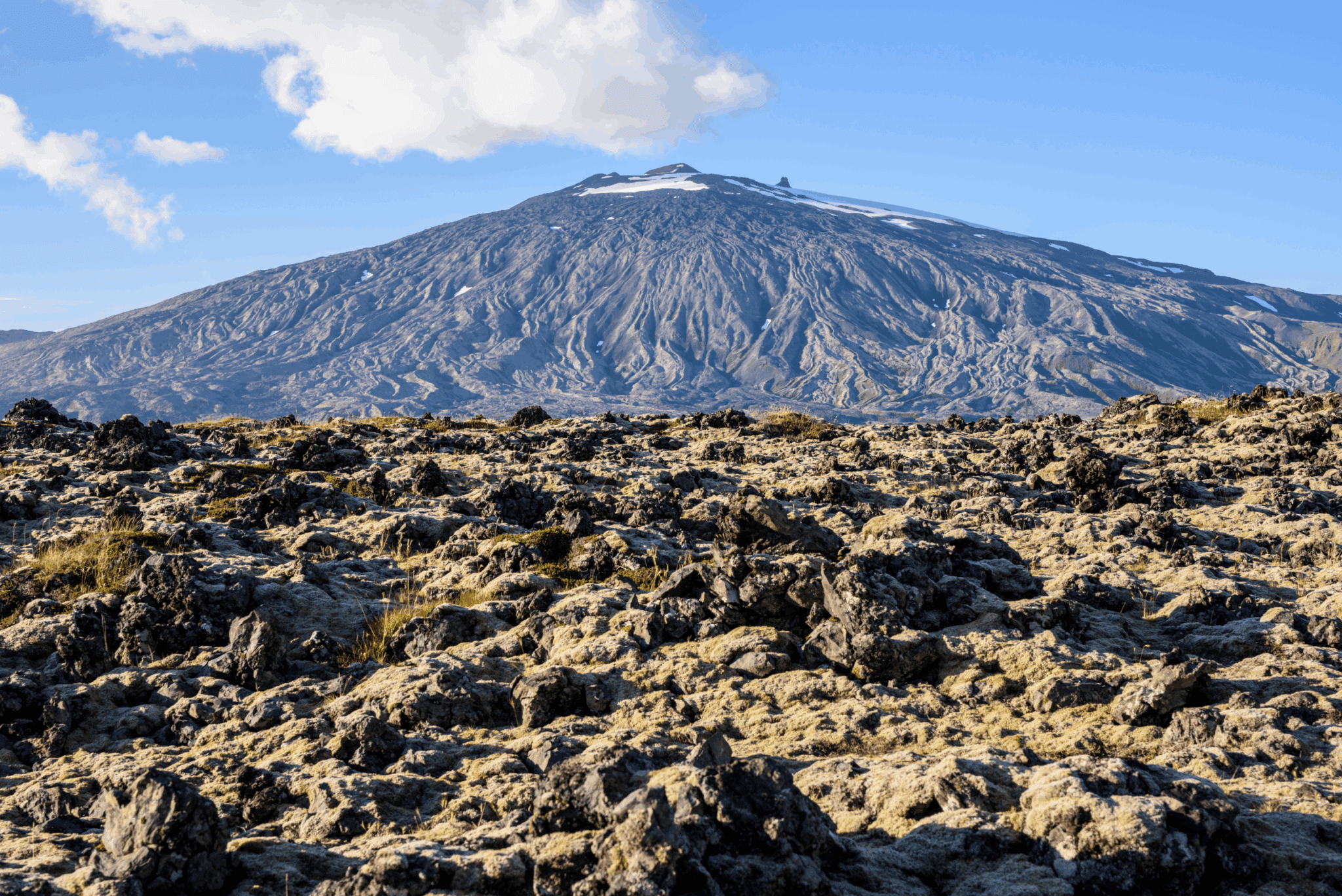 Snæfellsnes is a peninsula that possesses a great diversity of what Iceland has to offer. Its unique landscapes of rugged moss-grown lava fields, charming little fishing villages by the coastline, and wealth of remains and history dating back to the period of settlement and the formation of Iceland, makes for a whole day of "Iceland in miniature". The Snæfellsnes National Park is the first national park in Iceland to stretch from the top of a mountain with its boundaries reaching out into the ocean. At the far end of the Snæfellsnes National Park stands the renowned glacier Snæfellsjökull, believed to be one of the seven energy centers or chakras of the world due to the great powers and energy that many people sense when in its presence. It plays a big role in Jules Verne's science fiction Journey to the Center of the Earth published in 1864, and a movie of the same name in 2008 starring Brendan Fraser and the Icelandic actress Anita Briem.