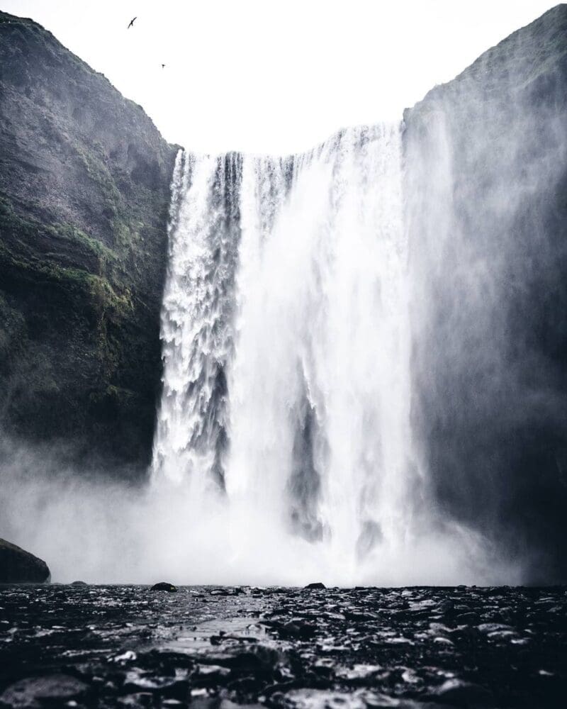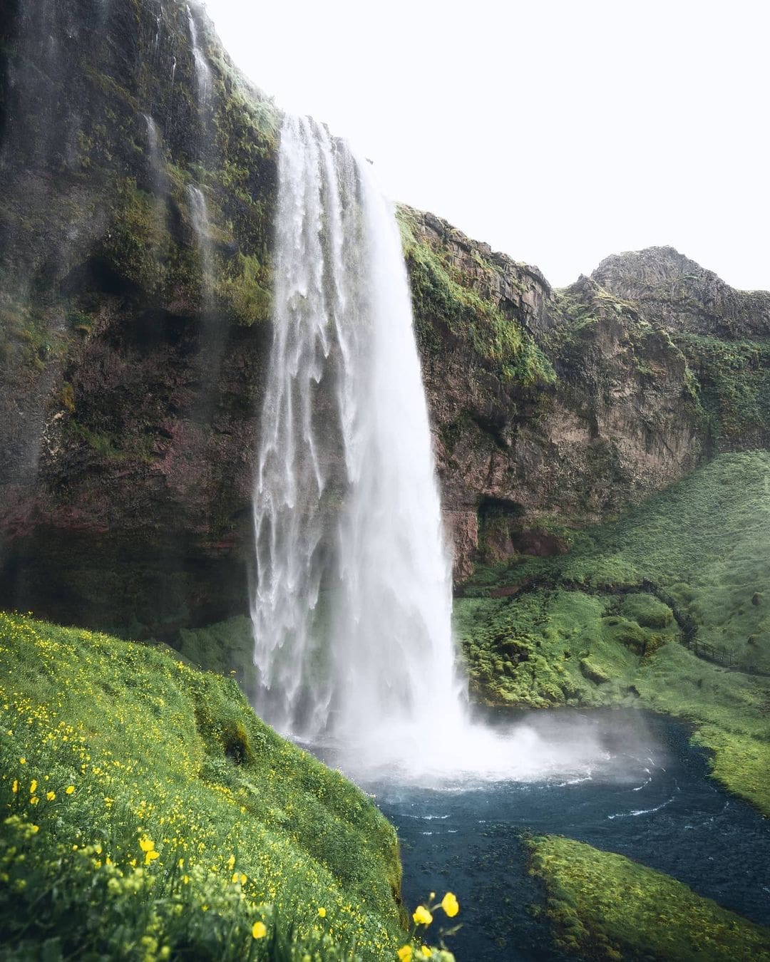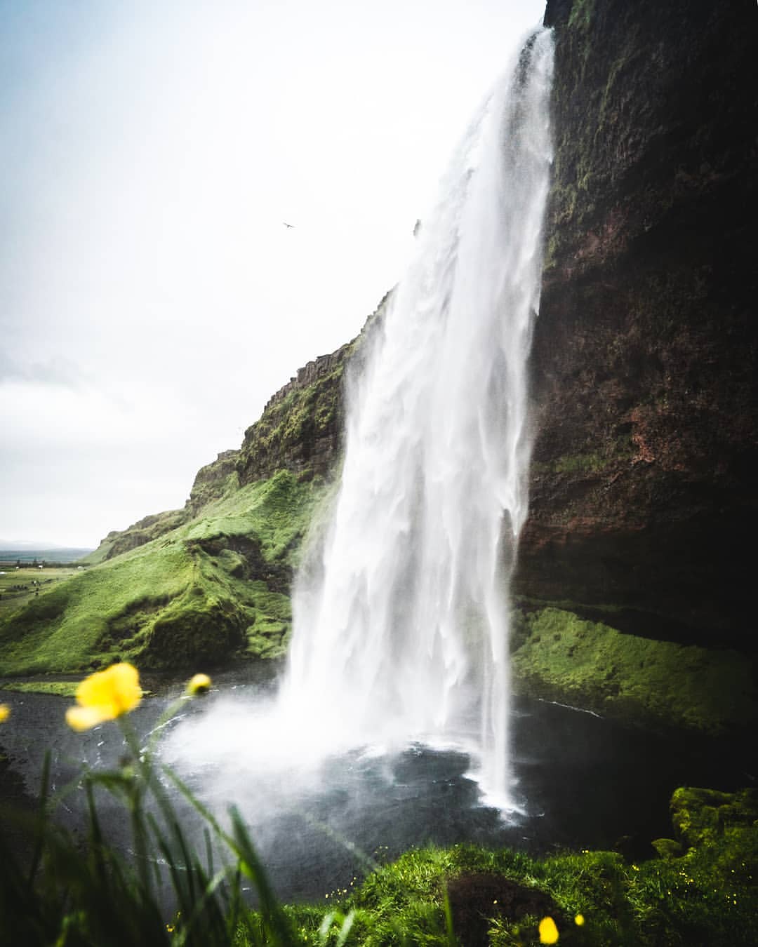 Your first stop is Seljalandsfoss waterfall. It is famous for the walking trail that leads behind it where on sunny days, you can see a rainbow coming over the waterfall on the other side. The water in this waterfall runs from the volcanic glacier Eyjafjallajökull.