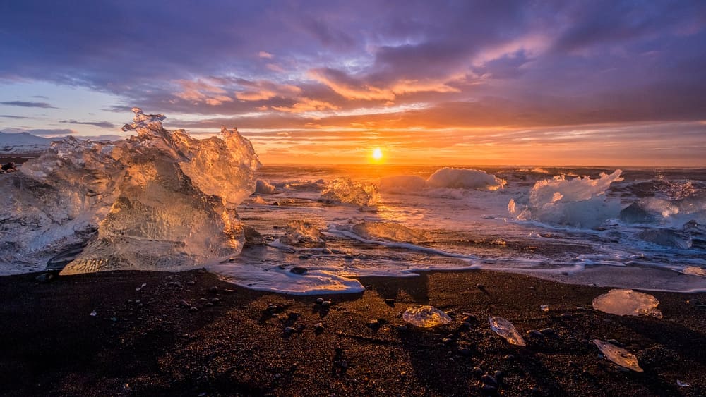 Finally, is the Glacier Lagoon filled with huge floating icebergs and seals, with the Diamond Beach next to it, the black sand beach filled with diamonds.