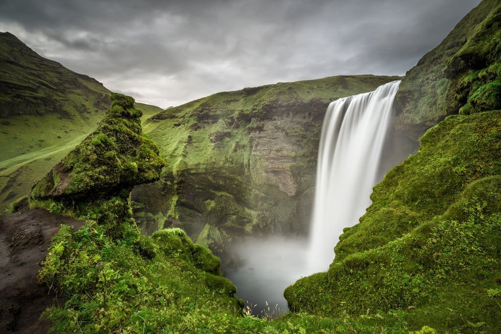 Seljalandsfoss is a 60 m high waterfall, beautifully located and exceptional because you can enjoy it from behind. A path takes you around the waterfall and standing behind it is a rare and unique experience. However, on very cold days the path can be closed because of ice, but then you have the opportunity to enjoy the beautiful icy landscape.SKÓGAFOSS WATERFALL