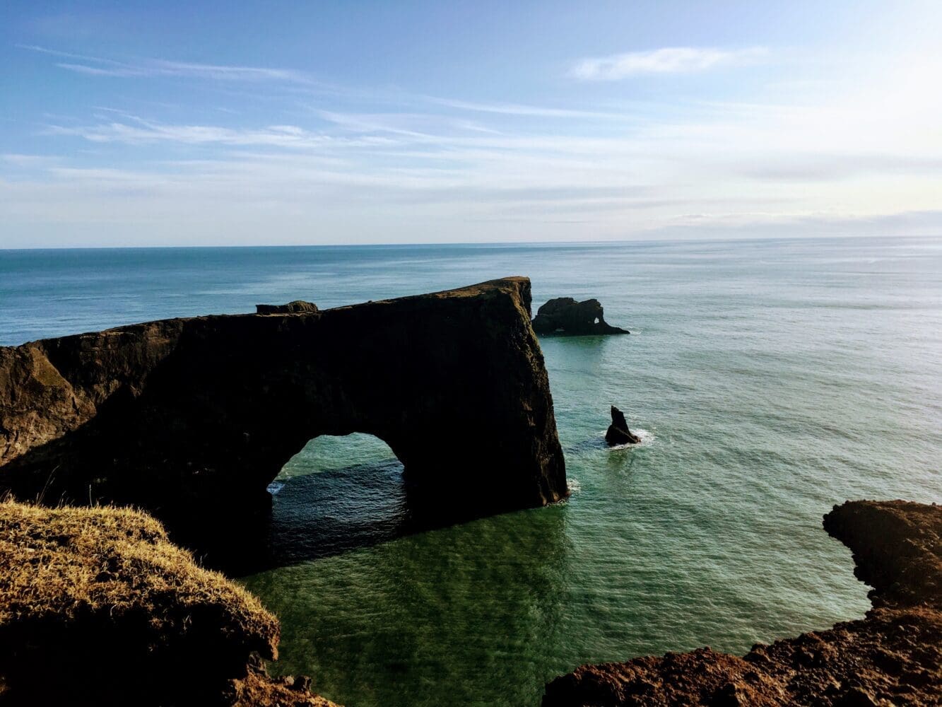 Then it’s back on the road to hunt down yet another of Iceland’s famous waterfalls; this time it’s the impressive Skógafoss with its dramatic 60-meter fall. Here we will take a moment to savor yet another of Mother Earth’s superb creations before heading in the direction of one of the most visited towns in the country: Vík í Mýrdal. This small coastal village is the only one of its kind in the country since it has no harbour. From the church, we can take amazing photos of a fantastic panoramic view not only over the village but also the coast beyond.
