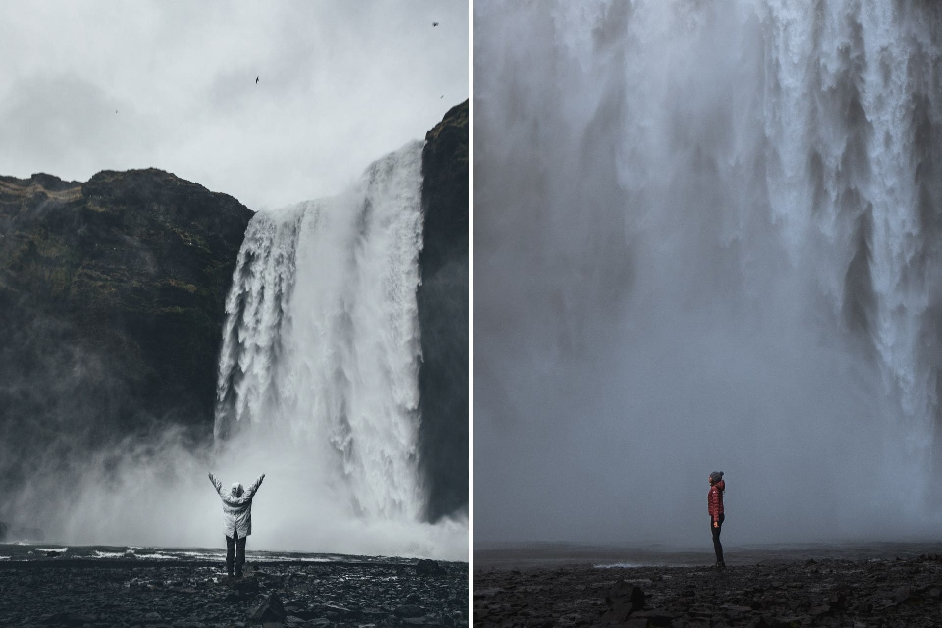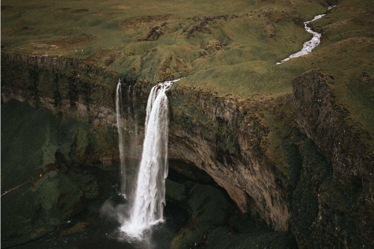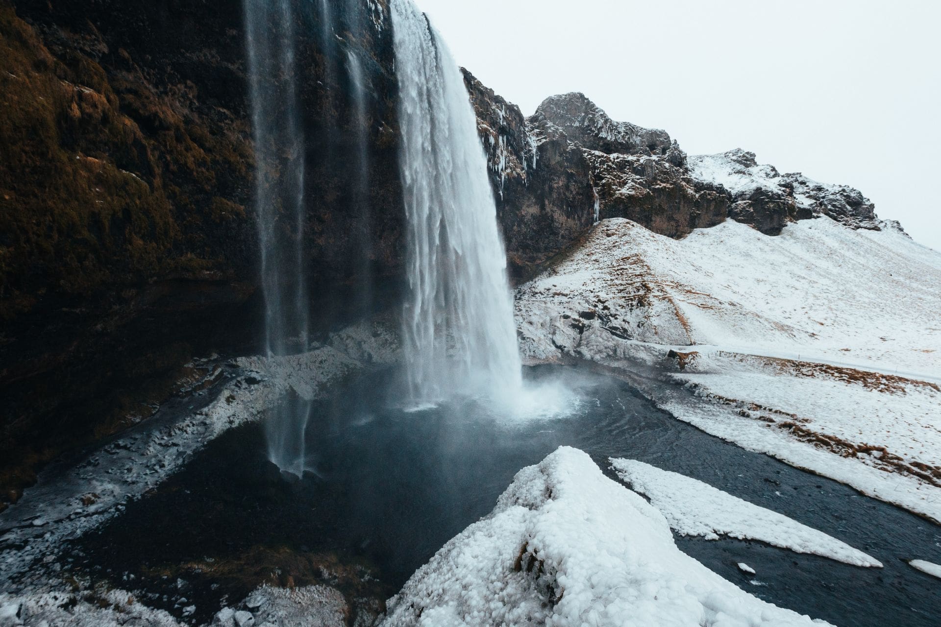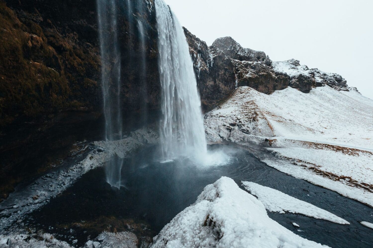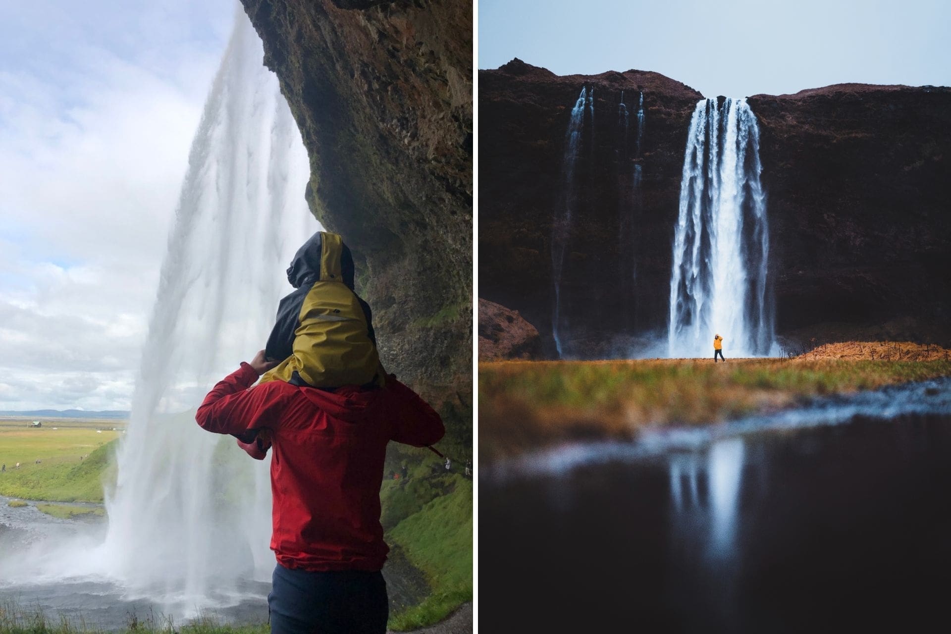 💦 Seljalandsfoss – Walk behind this famous cascade (yes, behind it!) and find the hidden gem nearby. Just a heads-up: you will get wet.