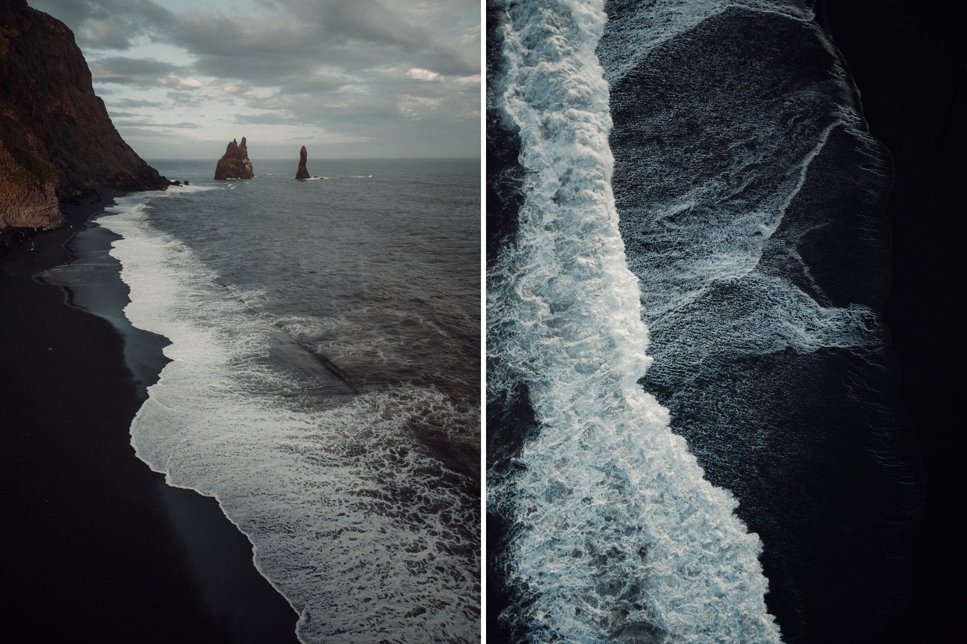 🖤 Reynisfjara / Black Sand Beach – A beach like no other—jet-black pebbles, towering basalt columns, and waves that command respect.