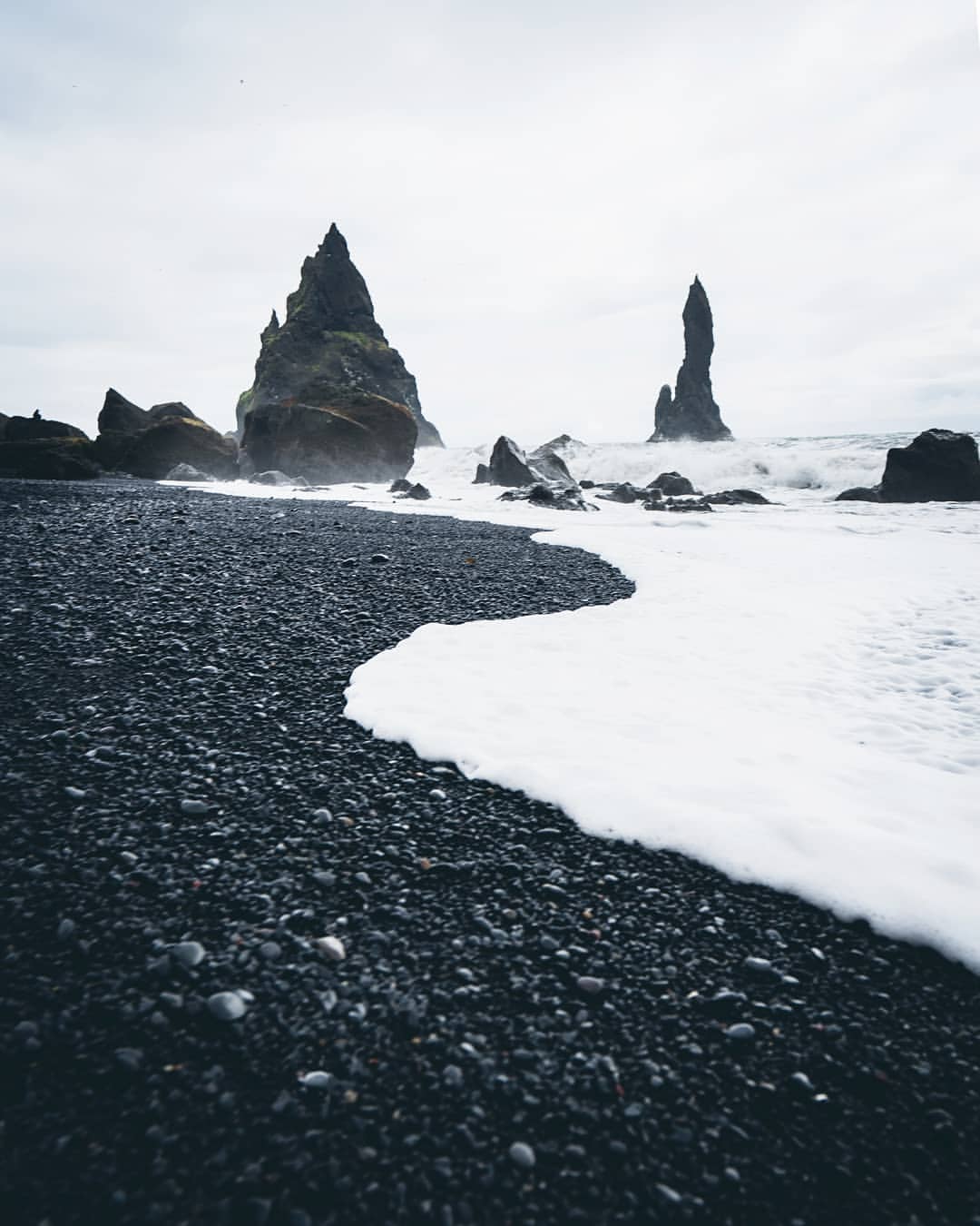 The Black Sand Beach or Reynisfjara with its basaltic rocks in the mountain towering over the beach is absolutely surreal. See the old troll that has turned into stone out in the ocean towing a 3 mast ship to shore.