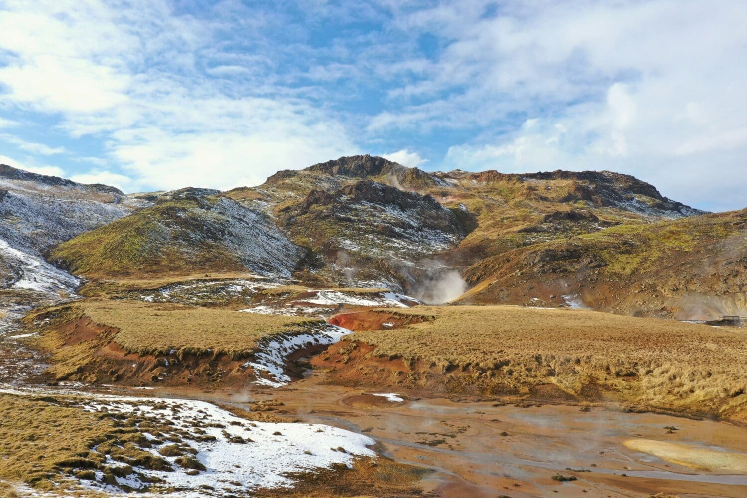 At Gunnuhver, the landscape shifts to one of Iceland’s most intense geothermal areas. Steam vents billow, and mud pools bubble vigorously, creating a dynamic, almost otherworldly scene. The sheer scale and heat of this geothermal field showcase the incredible forces constantly shaping the island beneath our feet.