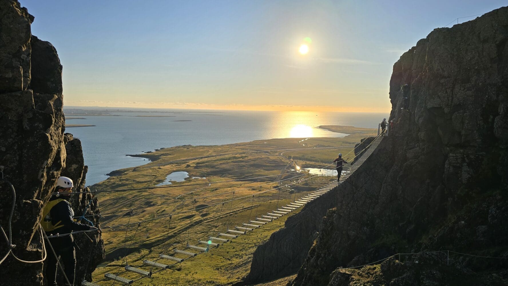 Join our experienced instructors in the spectacular Falcon Rock (Fálkaklettur) Via Ferrata. We offer Tours with spectacular views over the ocean to Reykjavik city. Climbing the rock is a great achievement and an unforgettable experience. We offer tours daily with an instructor and rental equipment. The tour starts from Mt. Esja Parking lot and takes 2-3 hours.