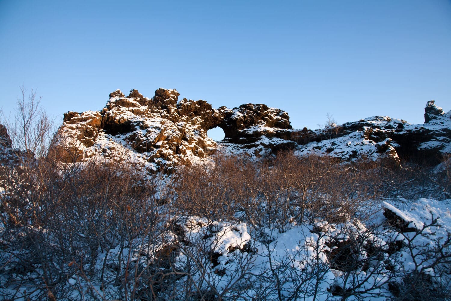 Lake Mývatn and its surroundings feature some of the most spectacular and diverse environments of the country, which can be equally enjoyed all year round. In summer and fall, the variety of colours is astonishing and becomes another attraction for the visitors, while, in winter and spring, the layer of white snow covering black lava creates a gloomy yet highly fascinating contrast.