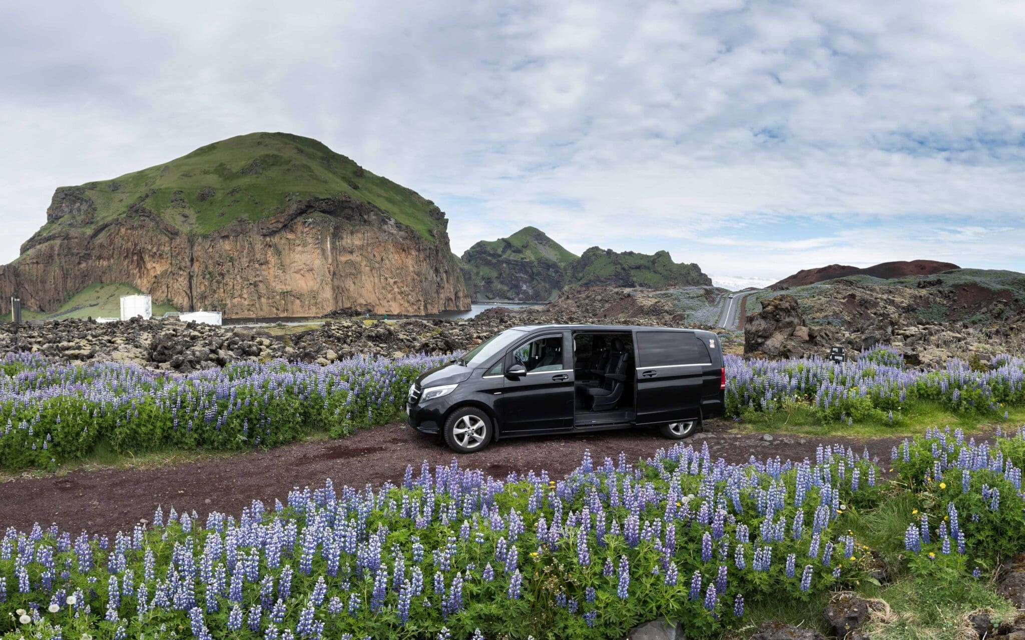 We start the tour where it suits you, we often meet guests in front of the ferry which is convenient when you come to a new place for the first time. Our guides are geniuses at seeing which of the ferry's passengers are coming on a tour with Viking Tours and we love welcoming people to the Westman Islands. Our car is a Mercedes V-class that can accommodate up to 5 passengers.