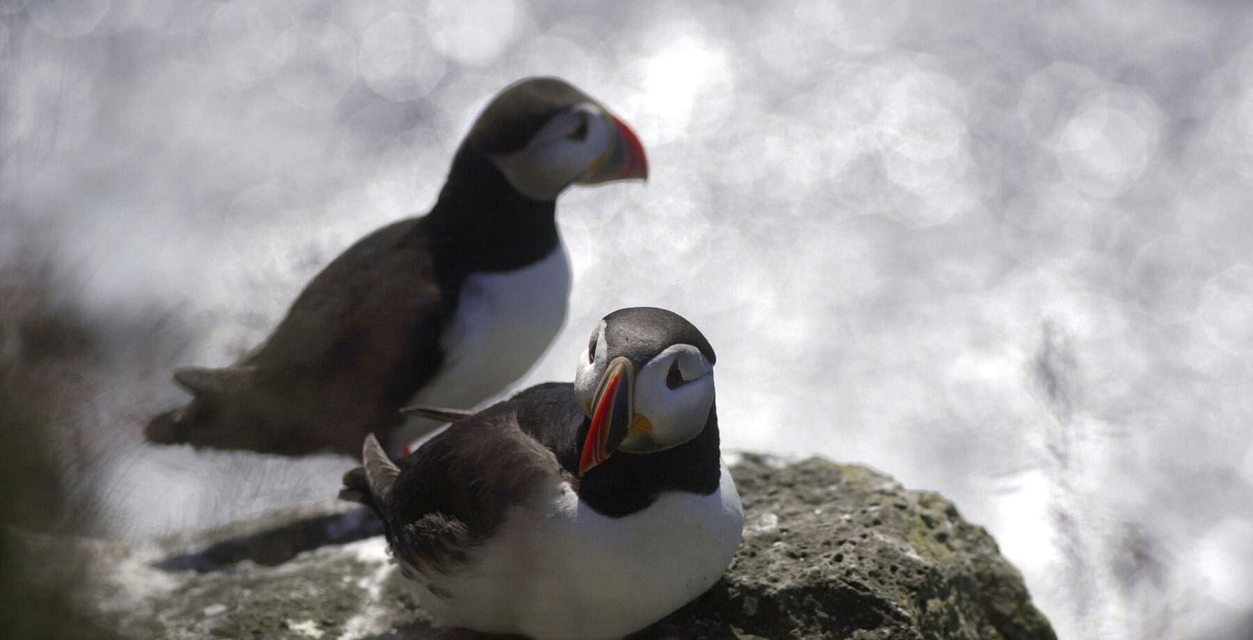 Lundey and Akurey are two small islands located in the Reykjavík bay area, only 15 minutes away from Reykjavík‘s Old harbour, from where we depart. The islands are covered with small hills and slopes and both are well known for their colorful birdlife. The island‘s shores are rocky but Old Skuli is especially designed to take us as close to the islands as possible due to its shallow draft. When we arrive to the islands we turn off the engine so our passengers can observe the birds and the beautiful surroundings. Our licensed guide tells all about the Puffins and other birds of interest that are often seen on the Puffin watching tours.