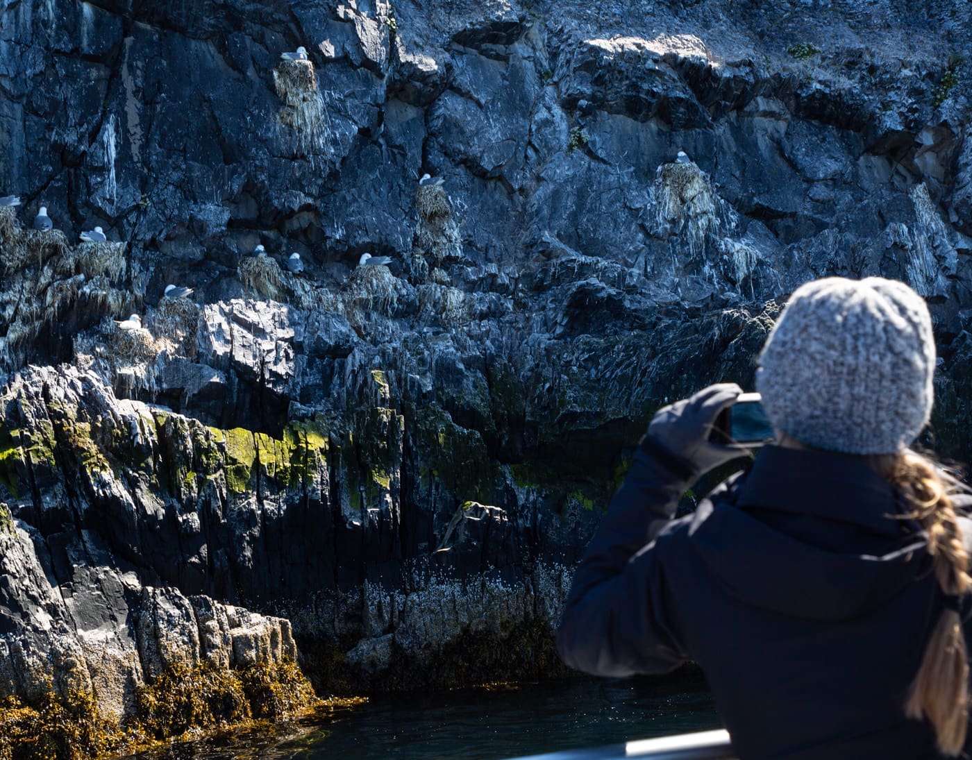Our tours take place on well-equipped Icelandic fishing boats, perfect for birdwatching and exploring the narrow waterways between the bay’s many small islands. Unlike larger vessels, our boats allow us to get closer to puffins and other seabirds without disturbing their natural habitat. We take pride in offering friendly, personal service to all of our guests.