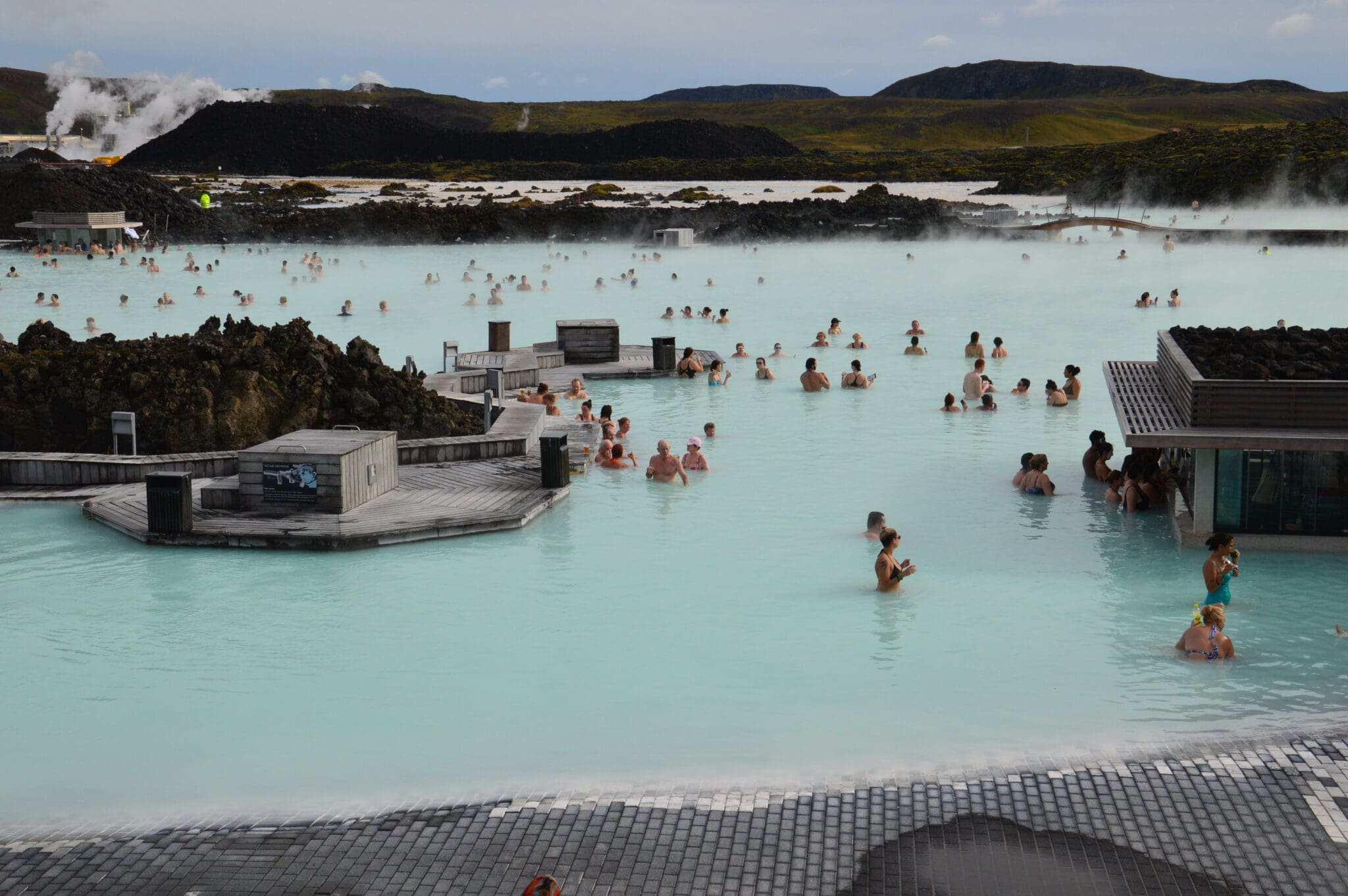 The geothermal water originates 2,000 meters below the surface, where freshwater and seawater combine at extreme temperatures. It is then harnessed via drilling holes at a nearby geothermal power plant, Svartsengi, to create electricity and hot water for nearby communities.