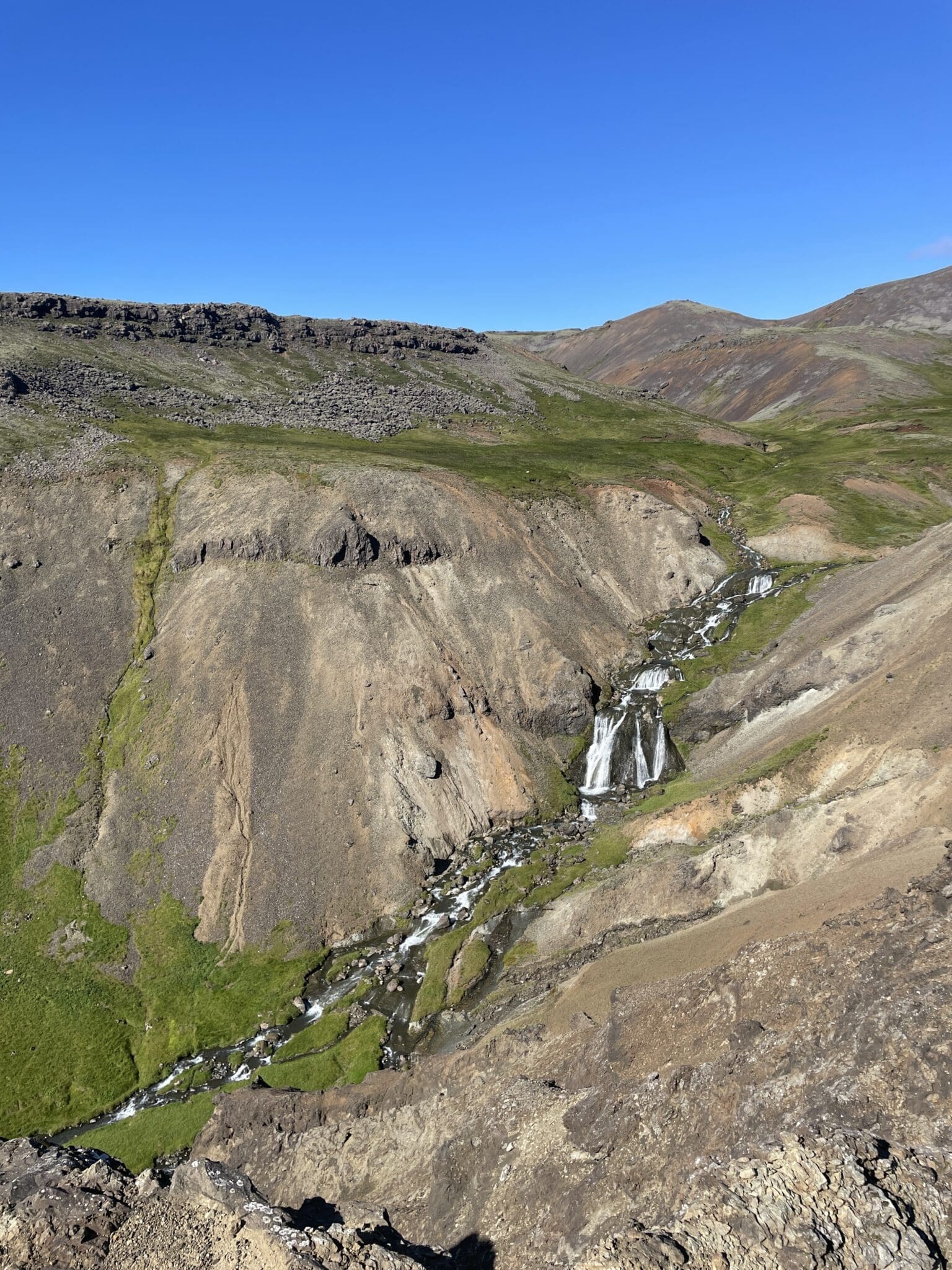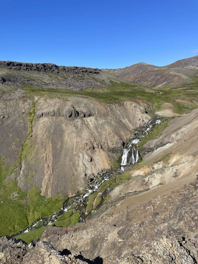The hike is moderate and takes approximately 45-60 minutes each way, with your private guide setting a comfortable pace and sharing insights about Iceland's geology, nature and geothermal energy along the route. At the top of the valley you'll reach the famous naturally heated river, where warm geothermal water flows through the landscape.
