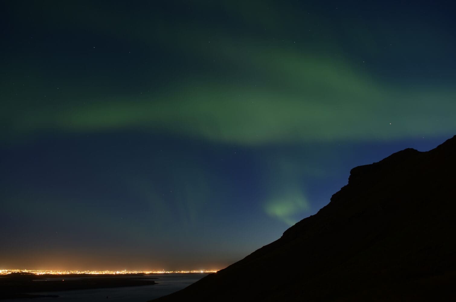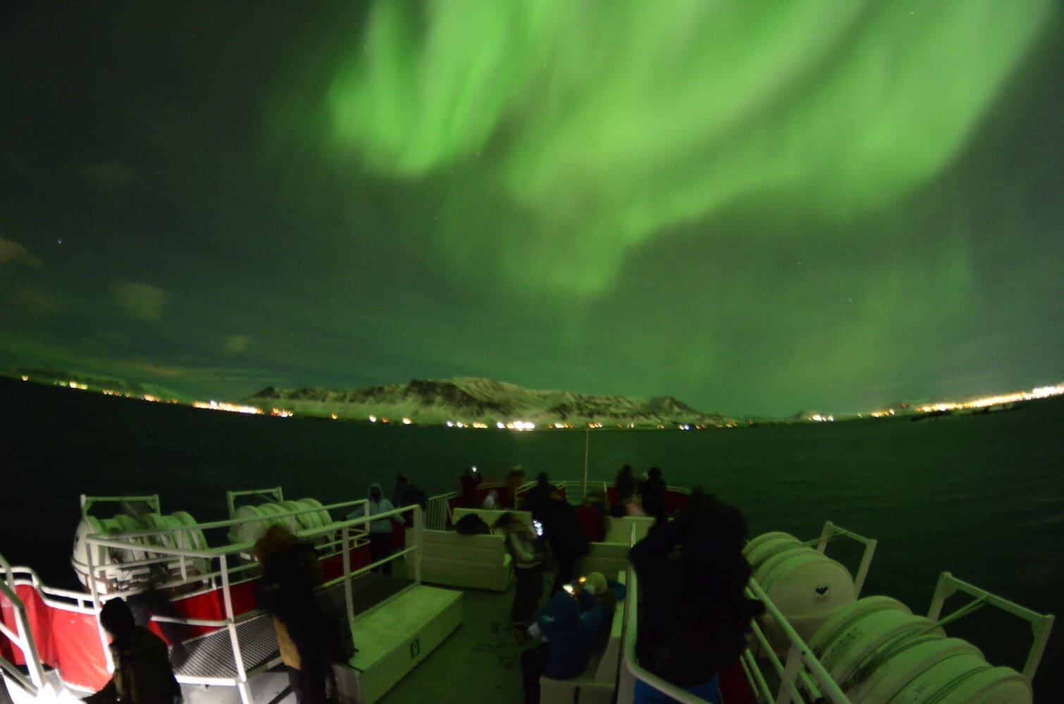 Join us for an enchanting blend of nature and city nightscapes, where Reykjavík’s charm meets the northern lights at sea.