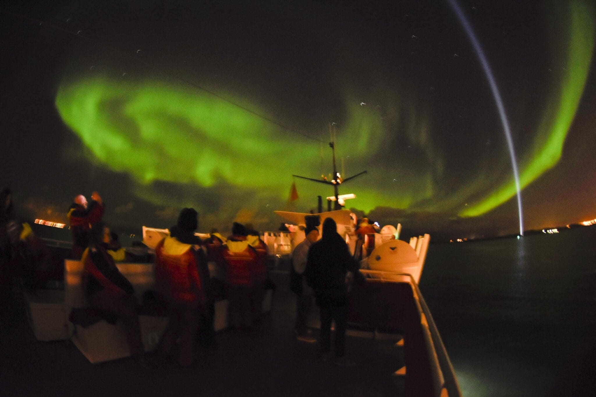 Our experienced crew continuously monitor the weather and solar activity to maximise your chances of witnessing the lights, and we sail as long as conditions at sea are favourable. Whether it’s the natural wonder of the auroras, the glowing Imagine Peace Tower, or Reykjavík’s shimmering city lights, every evening offers its own kind of magic.