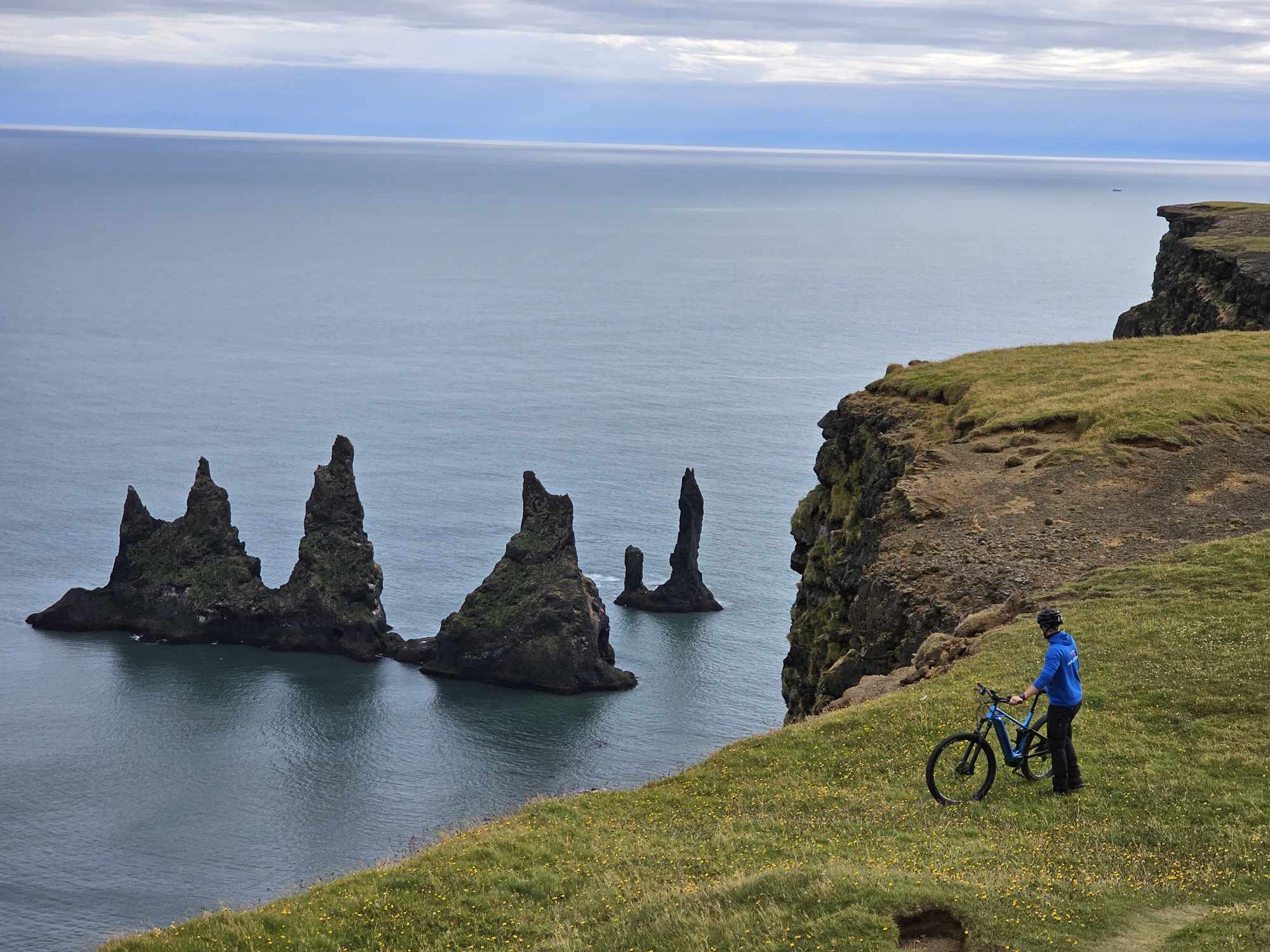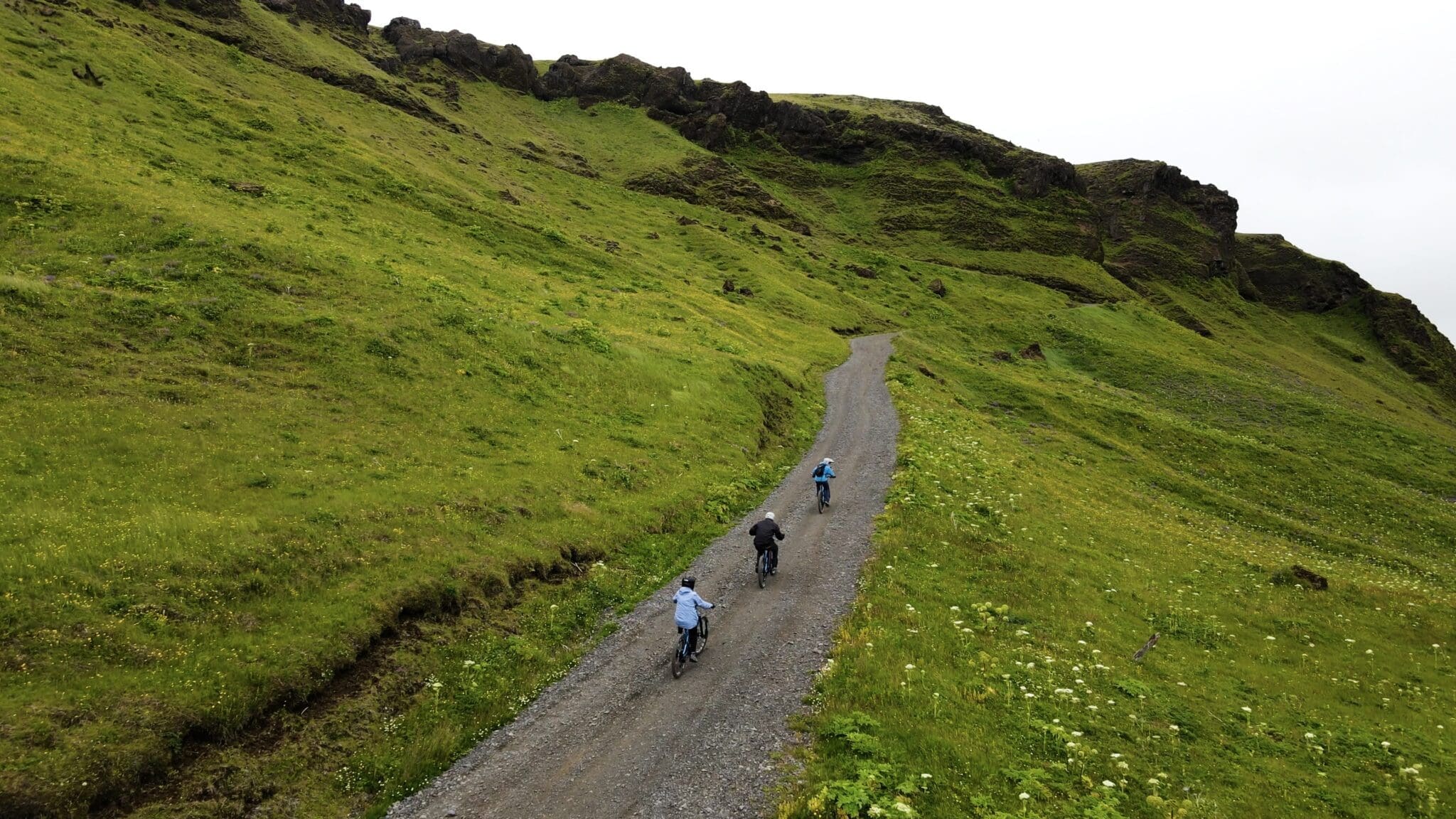 Your journey begins in Vík, where we equip you with a high-performance electric mountain bike. From there, we cycle through the village and ascend the historic mountain road leading up Reynisfjall. While the electric assist helps, a good fitness level is required for this climb – ideal for experienced riders or those in good shape.
