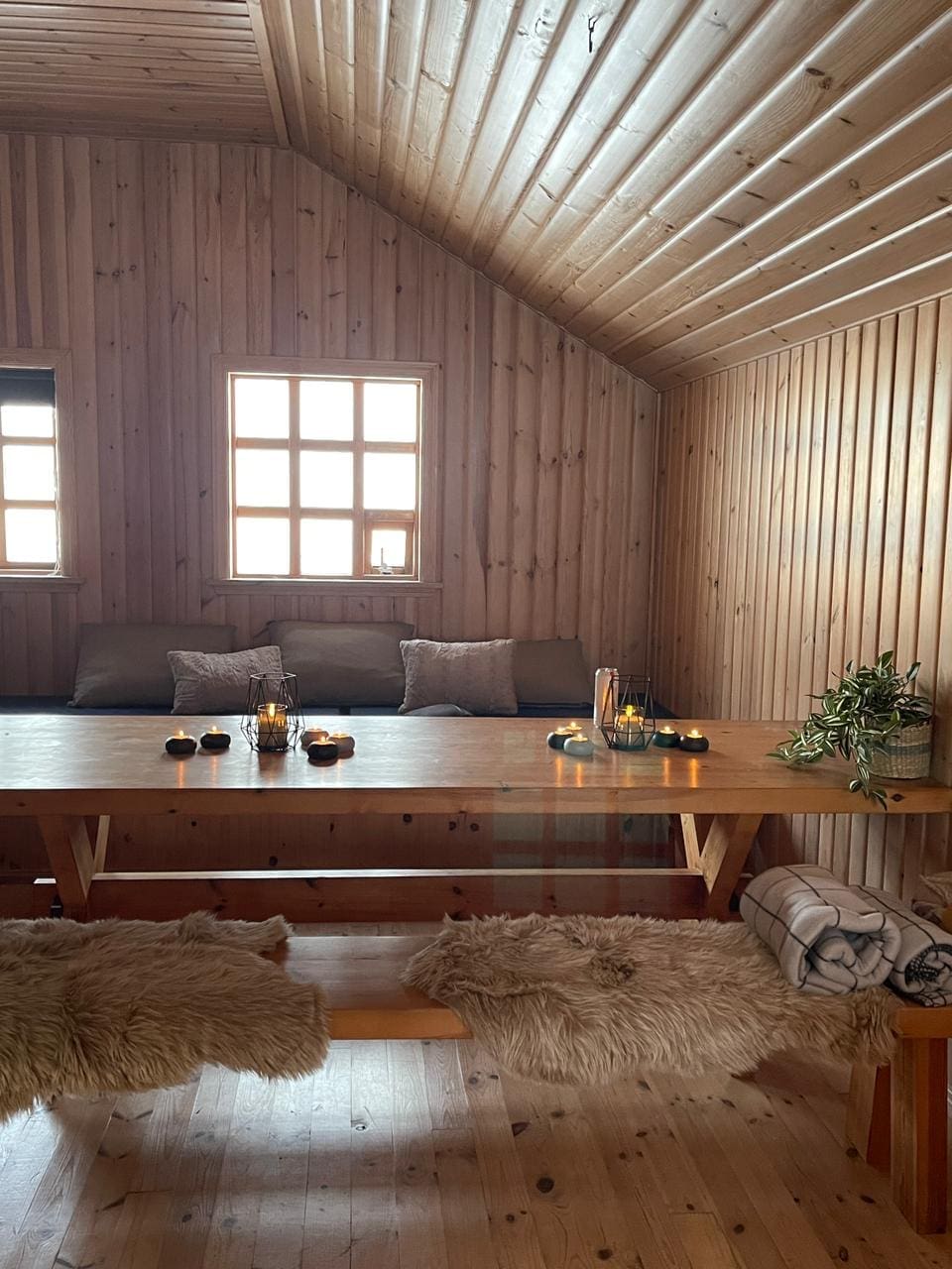 Sleeping in a mountain cabin in the Icelandic highlands is a truly unique experience that offers an unparalleled connection with nature.  The cabin is typically simple and rustic, with basic amenities, but offer comfortable accommodations to recharge after a long day of exploring. In the evenings, visitors can enjoy breathtaking views of the surrounding mountains and the midnight sun in the summer or Northern Lights in the winter