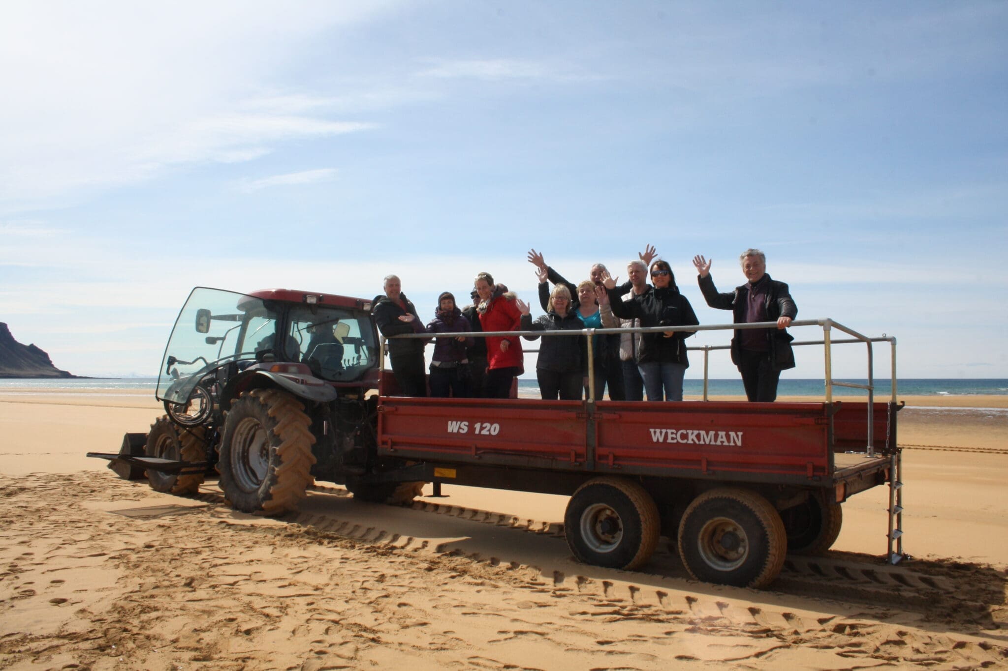 Rauðasandur, close to Látrabjarg cliffs, takes its name (Red Sand) from the colour of the sand on the coast. Rauðasandur is one of the most spectacular sites in Iceland – many would say it is Iceland's best kept secret – surrounded by magnificent landscape on both sides, red colored sand beautiful settings of black cliffs and turquoise blue ocean. Our local guide will take you to a natural colony of wild seals, often seen at a close range, on locations known to locals. During the summer more than 100 seals take advantage of the sun at Rauðasandur, lying on the sand sunbathing and resting on the beach. In early spring mothers lie on the sand with their newly born baby seals. Later in the summer you can watch as the pups take their first steps to adulthood. A local farmer will take us on a tractor carriage down on the sand towards the seal colony, if the conditions are right – truly an adventure trip. If the sand is not suitable for the tractor ride there is a comfortable walk down to the colony and our guide will tell you all about the area on the way there. We get close to the seal colony, but not too close in order not to disturb these playful and curious animals. Seals are naturally curious and you can expect to get some excellent pictures of these beautiful animals in picturesque landscape. This is an experience that you don‘t want to miss out. The tour starts and ends at the Westfjords Adventures office in Patreksfjörður. Transportation included in prices.