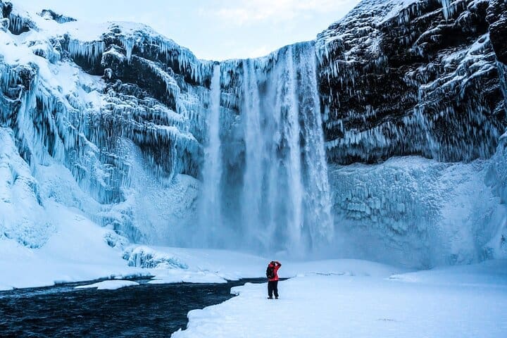 Today, as per our plan, you start by visiting the capital of Iceland, Reykjavík where we can include admission to the Perlan Museum Aurora show (as an optional activity of the tour and by indicating that in your booking), Harpa, the Music & Conference Hall, Hallgrímskirkja Church, and the famous Sun Voyager sculpture right by the seashore. You then would visit an original ice bar, Magic Ice Reykjavík (optional activity to be selected in the booking if you like) where you seat on blocks of ice! In the evening, you can dip in the warm waters of the Sky Lagoon (optionally included activity – select in the booking to be included if you choose to come here).