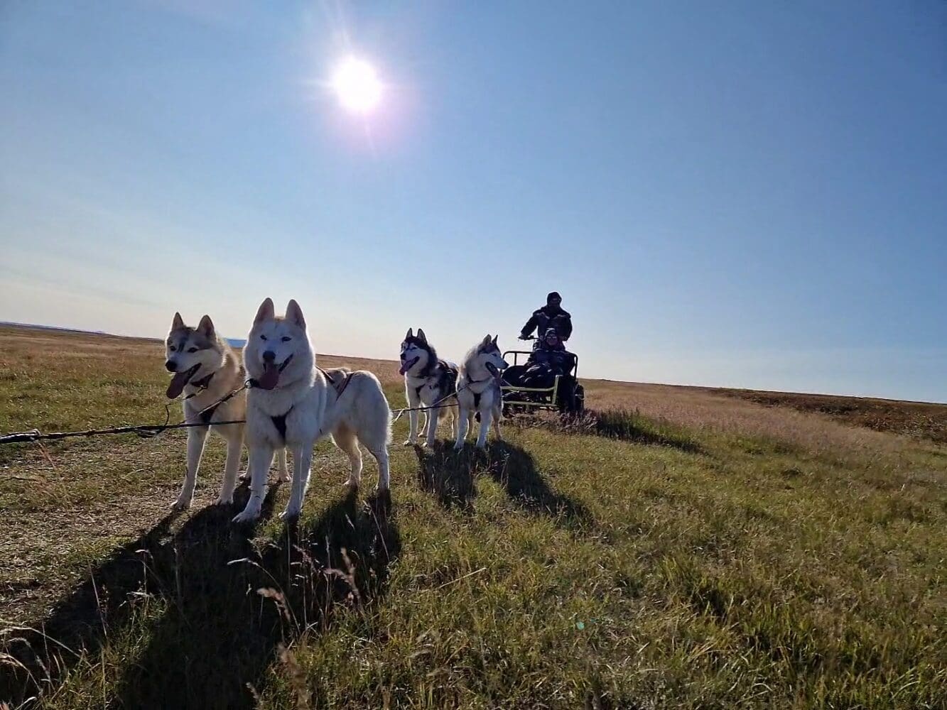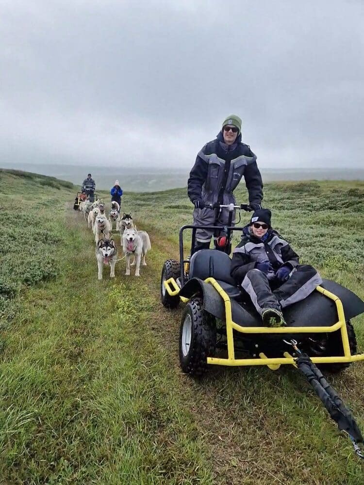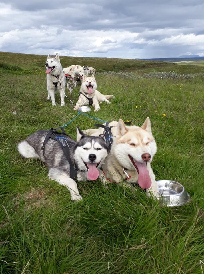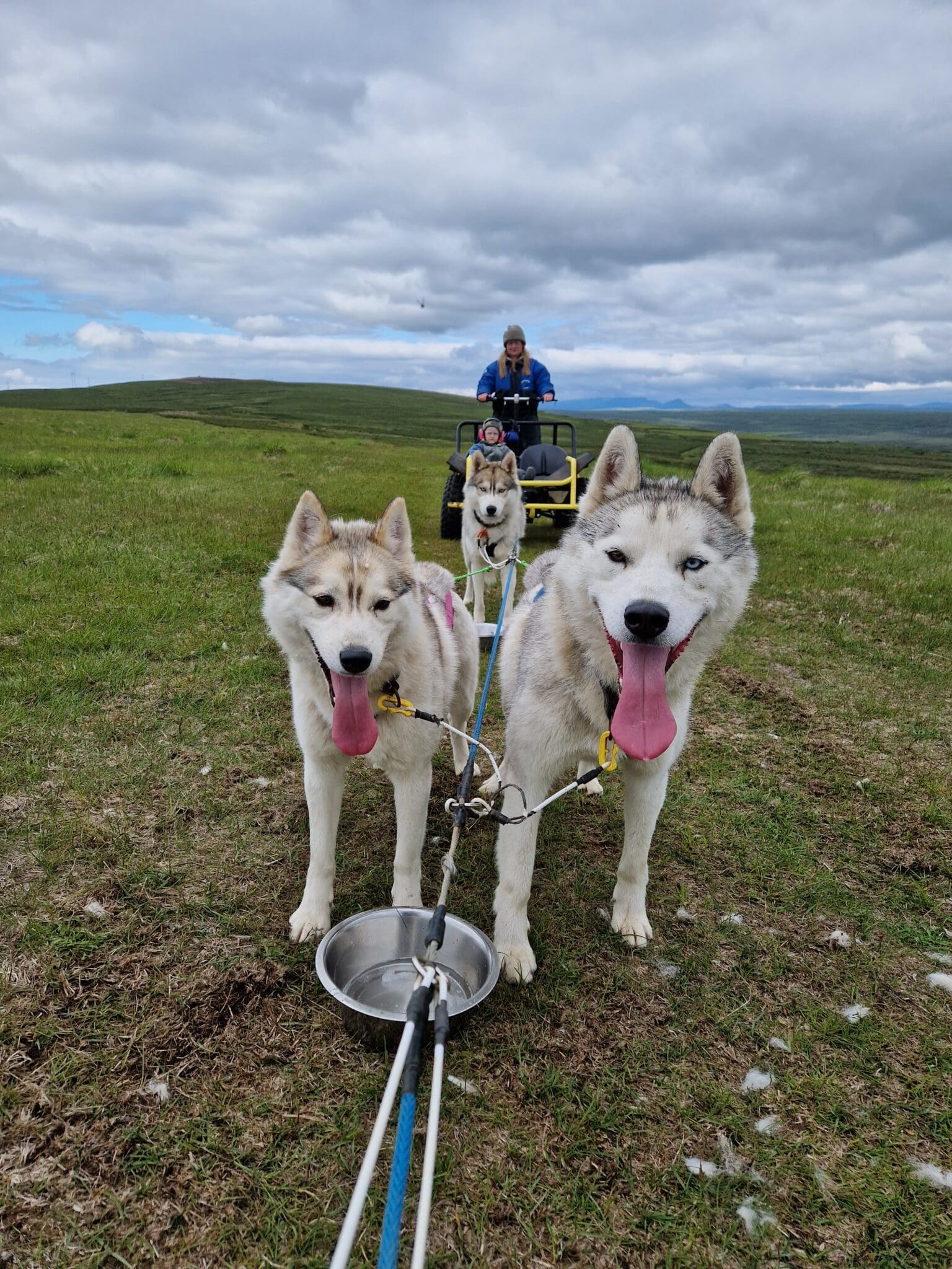 Summer Dog Cart Tour. Come and experience a dry land dog cart tour with our Siberian Huskies and visit our un-chained Siberian Husky Kennel at our farm Vallholt, between Akureyri and Lake Mývatn, North Iceland.
