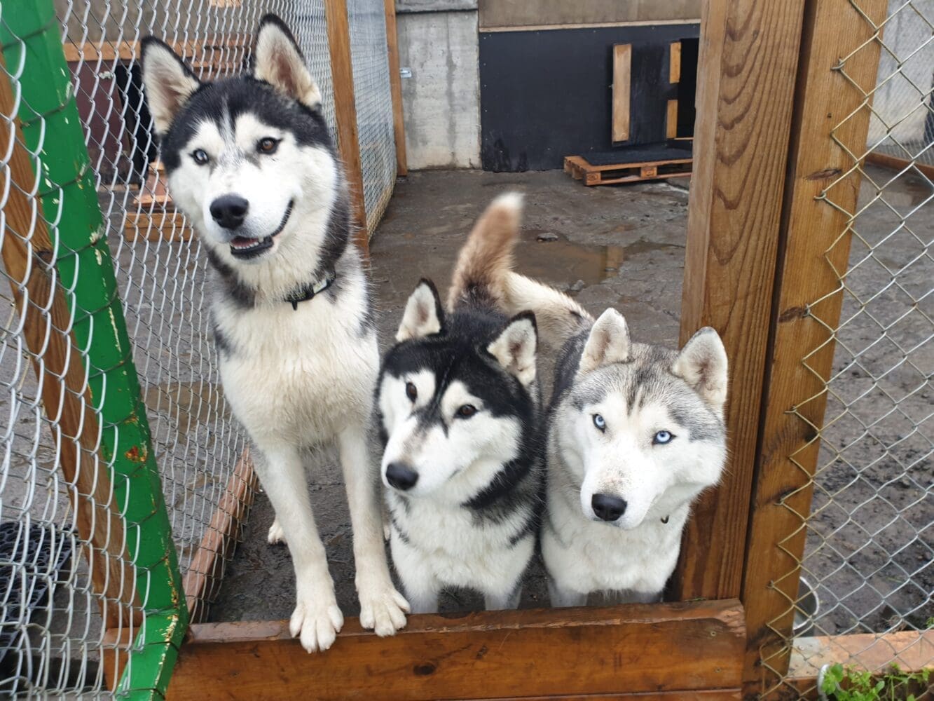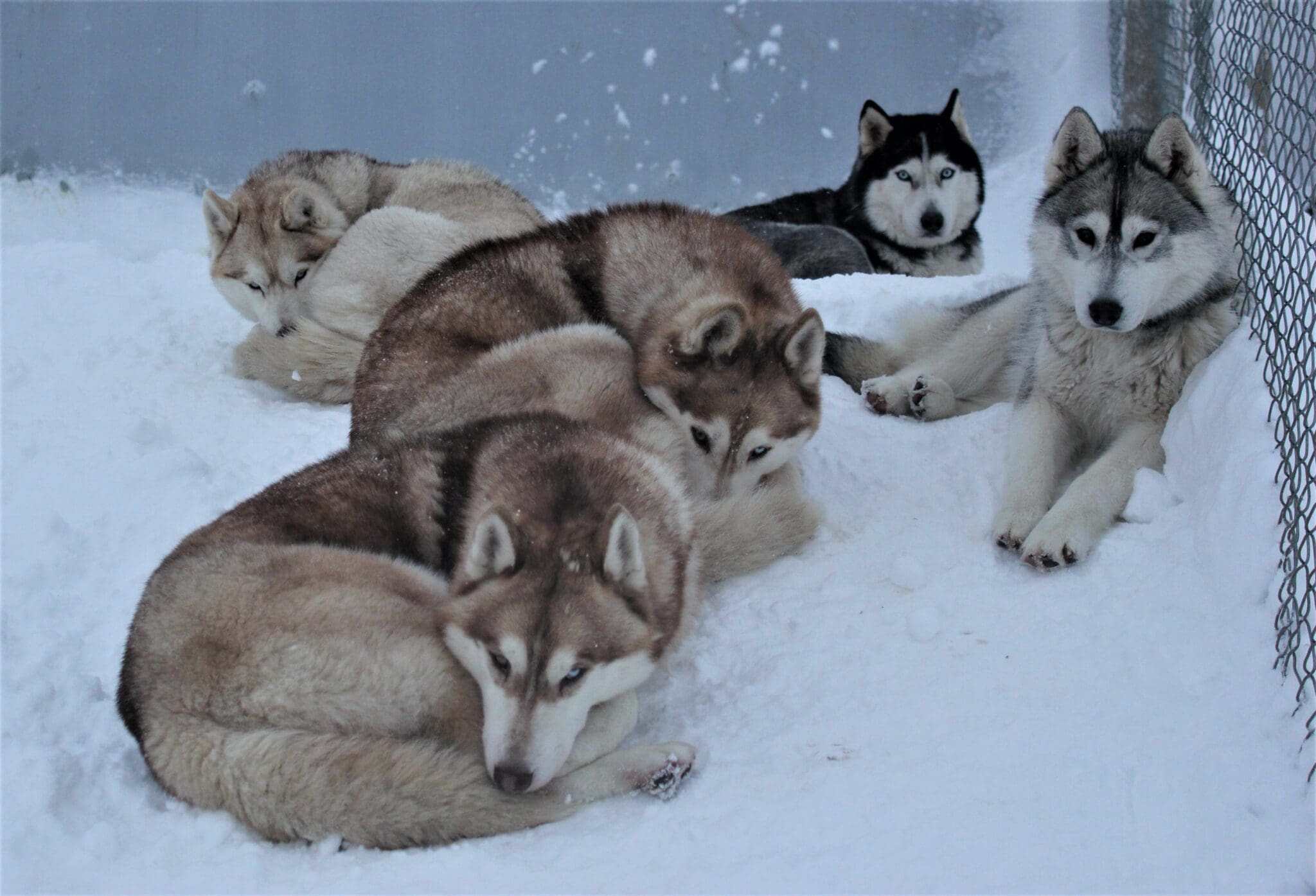 Our dogs are always loose in the kennel and we have separate fences for them. They love to be outside all the time but when weather is very bad we have indoor area for them to be in.
