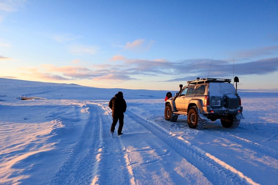 On this tour you will witness some of the most beautiful places in the western part of Iceland. We start the day by picking you up at your accommodation in Reykjavík in our modified super jeep. We dive towards Hvalfjörður fjord on our way to Borgarfjörður where we will visit Deildartunguhver Europe´s most powerful hot spring. We drive further inland to the Hraunfossar and Barnafossar waterfalls and on through the Húsafell woodland where we will stop for lunch.(not includet) At Húsafell we leave the main road and take the highland trail to Iceland’s second largest ice field, Langjökull glacier were we put our super jeep to the test by driving on the glacier. On our way back to Reykjavík we take the highest mountain road in Iceland the “cold Valley” or Kaldidalur witch will lead us back down to Þingvellir national park one of the most beautiful and historical places in Iceland.