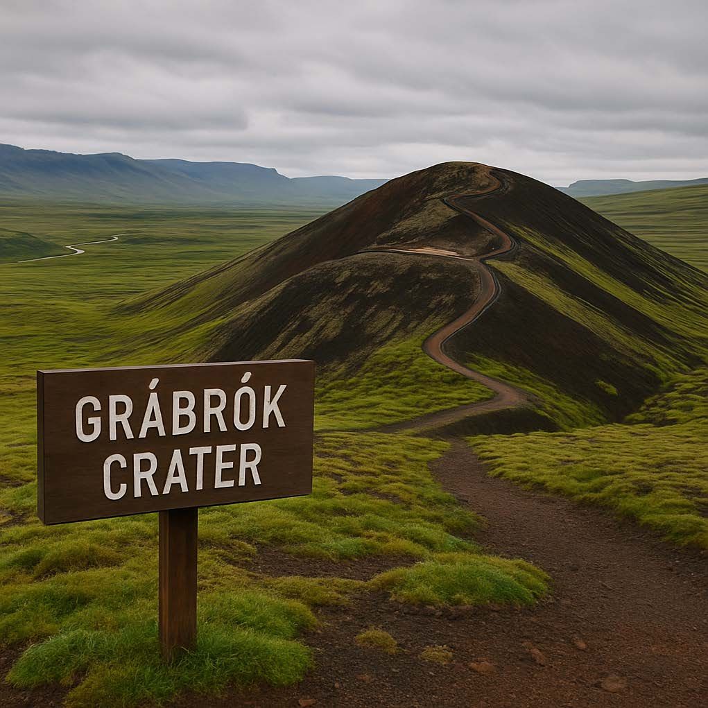 Grábrók Crater: Embark on a short, scenic hike to the top of Grábrók Crater, a striking ancient volcanic crater formed about 3,400 years ago. A well-maintained wooden staircase leads you to the rim, where you'll be rewarded with sweeping panoramic views of the surrounding moss-covered lava fields and distant mountains – a fantastic photo opportunity!